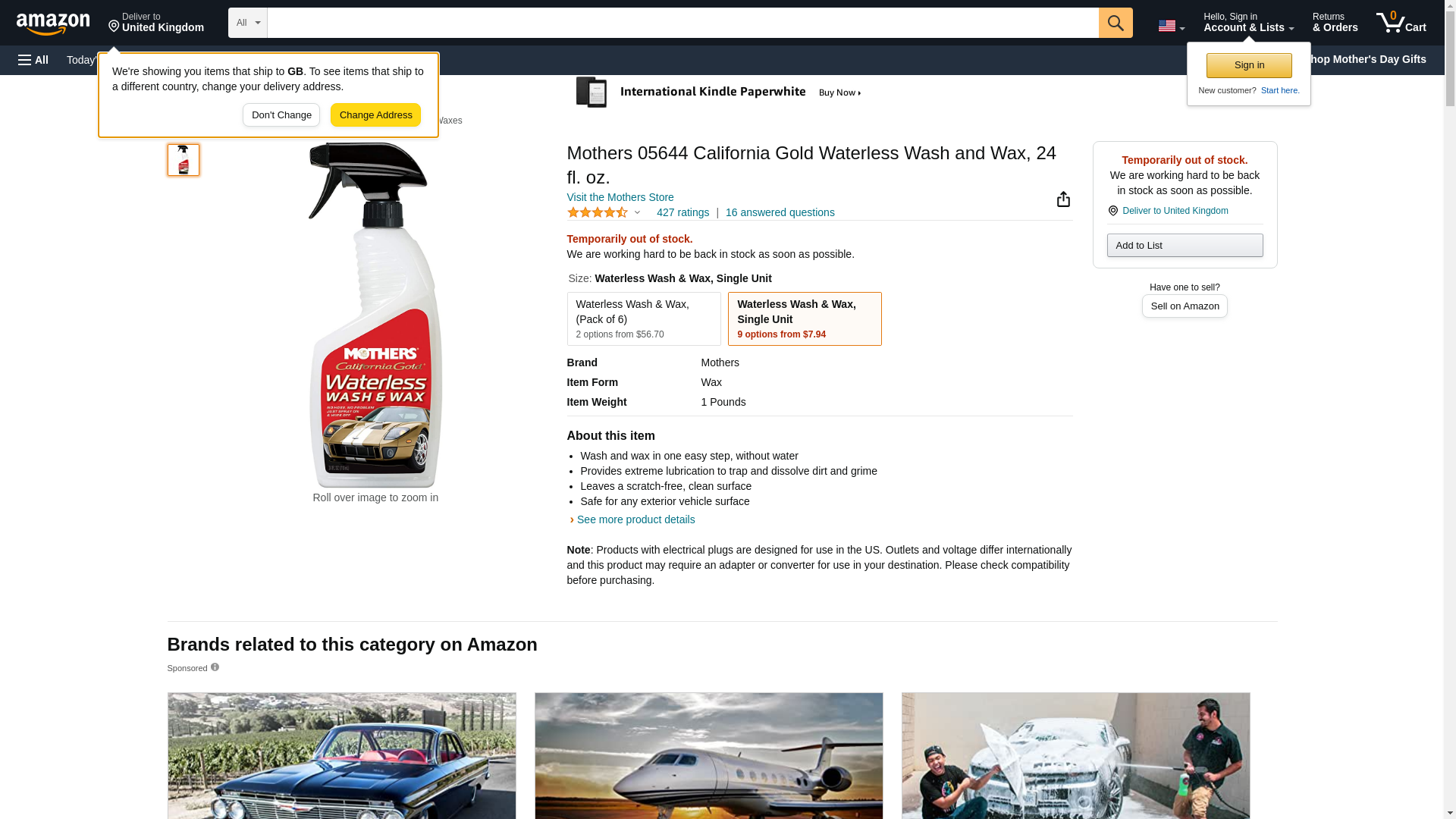 Mothers 05644 California Gold Waterless Wash and Wax, 24 fl. oz.
