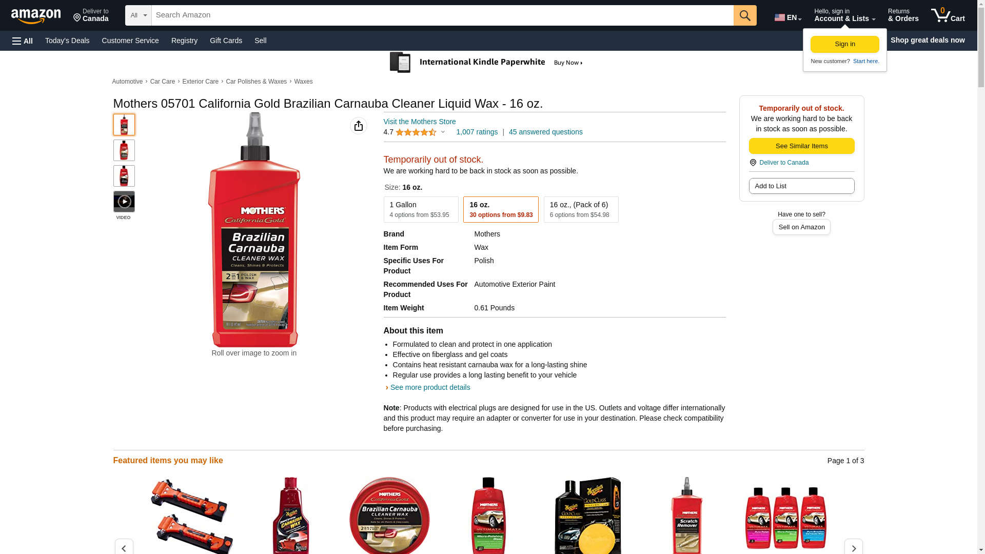 Mothers 05701 16 Oz Carnauba Cleaner Wax
