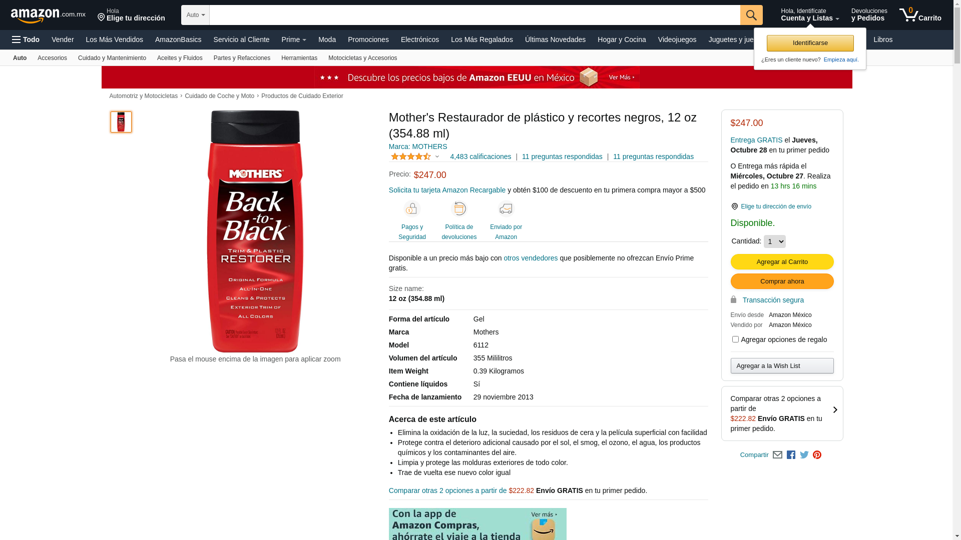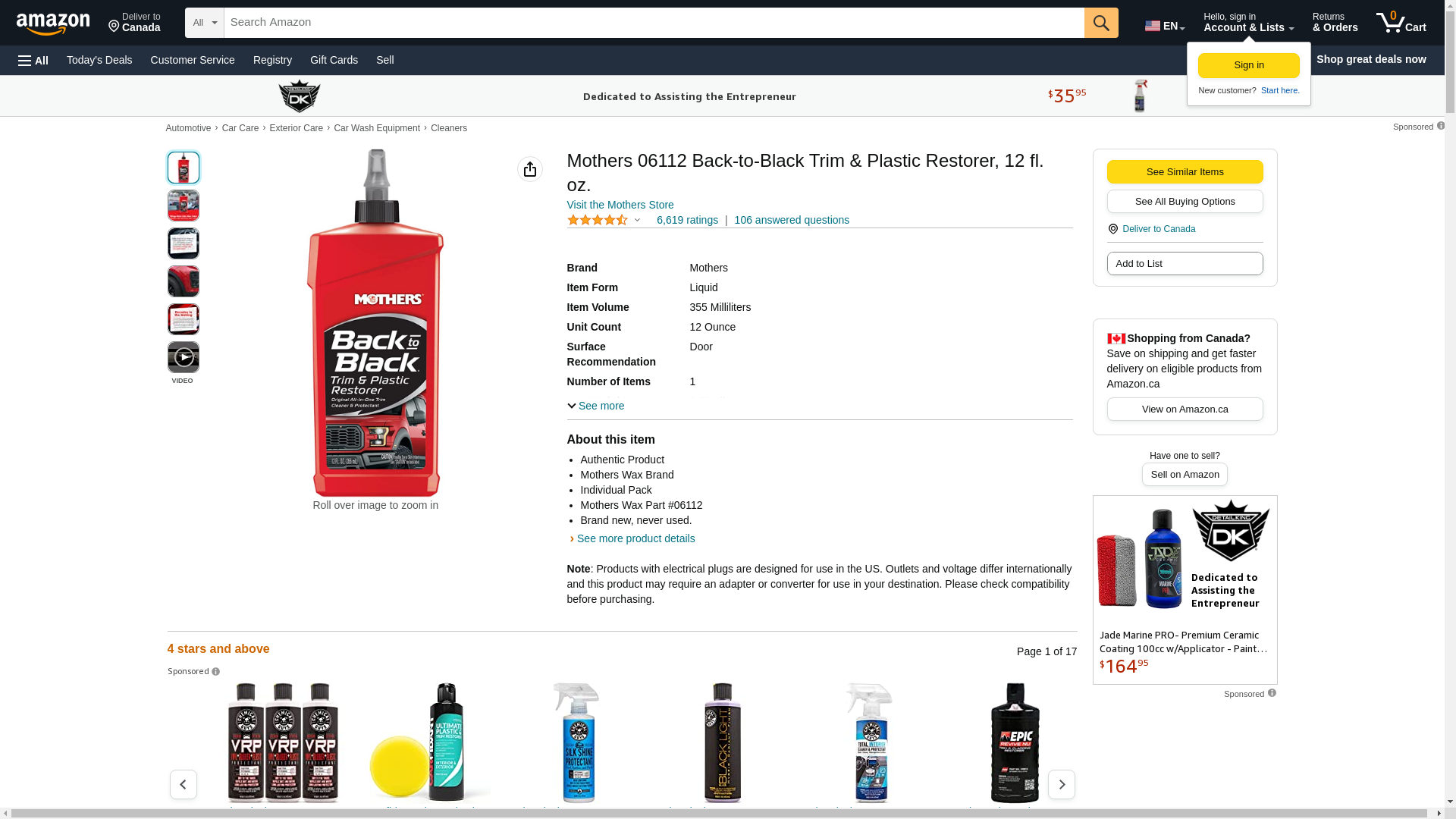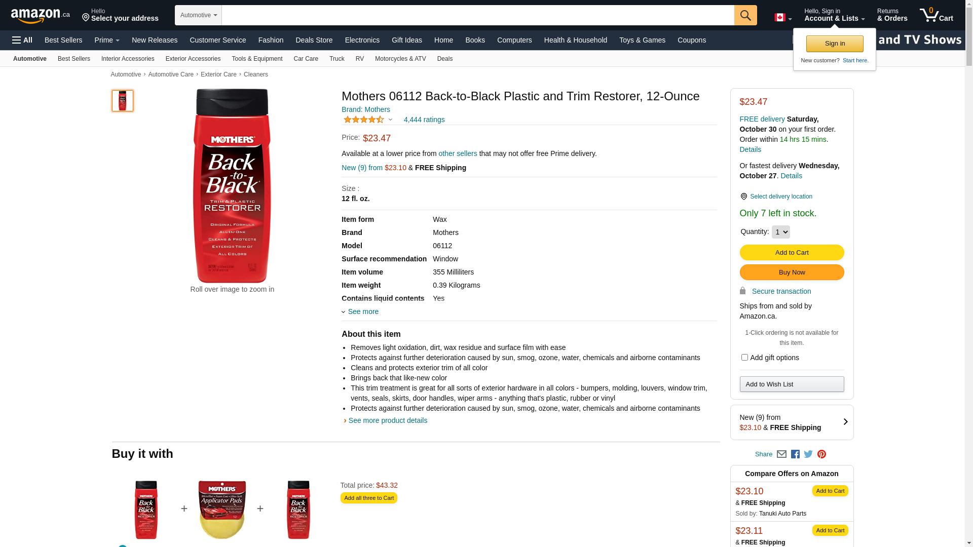 Mothers Back-To-Black Plastic Trim and Plastic Restorer Liquid 12 oz.