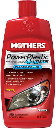 PowerPlastic 4Lights® Plastic Polish -8oz - *Case of 6*Mothers® PowerPlastic 4Lights® Plastic Polish is specifically formulated for use by hand or with our PowerBall 4Lights® polishing tool. It allows you to quickly and easily polish and protect a wide variety of hard or flexible clear plastics in one simple step. It features a special blend of oxidation-inhibiting polymers, UV shields and an ultra-fine polish that work in unison to clean and clarify your headlights, taillights, convertible top windows and more.
