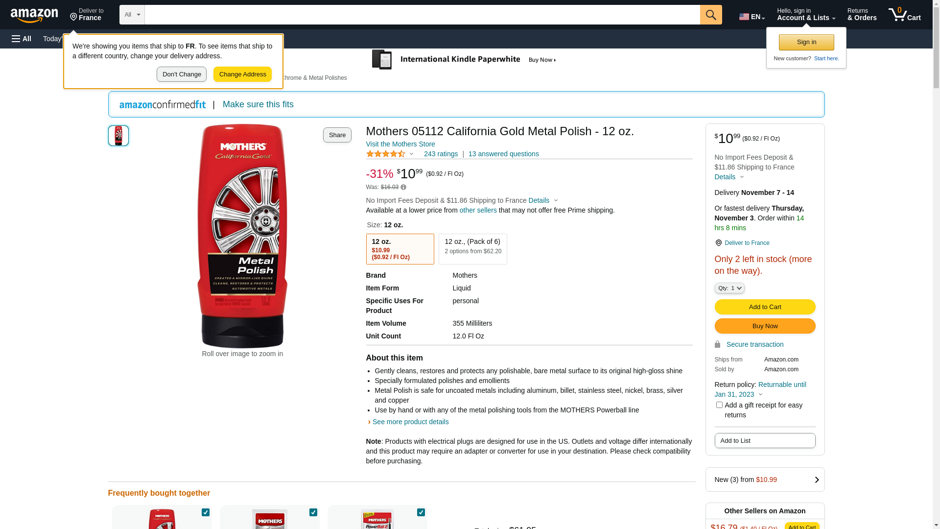 | Feature | 12oz, California gold, metal polish, gently cleans, restores & protects any polishable bare metal surface to its original hi gloss shine |