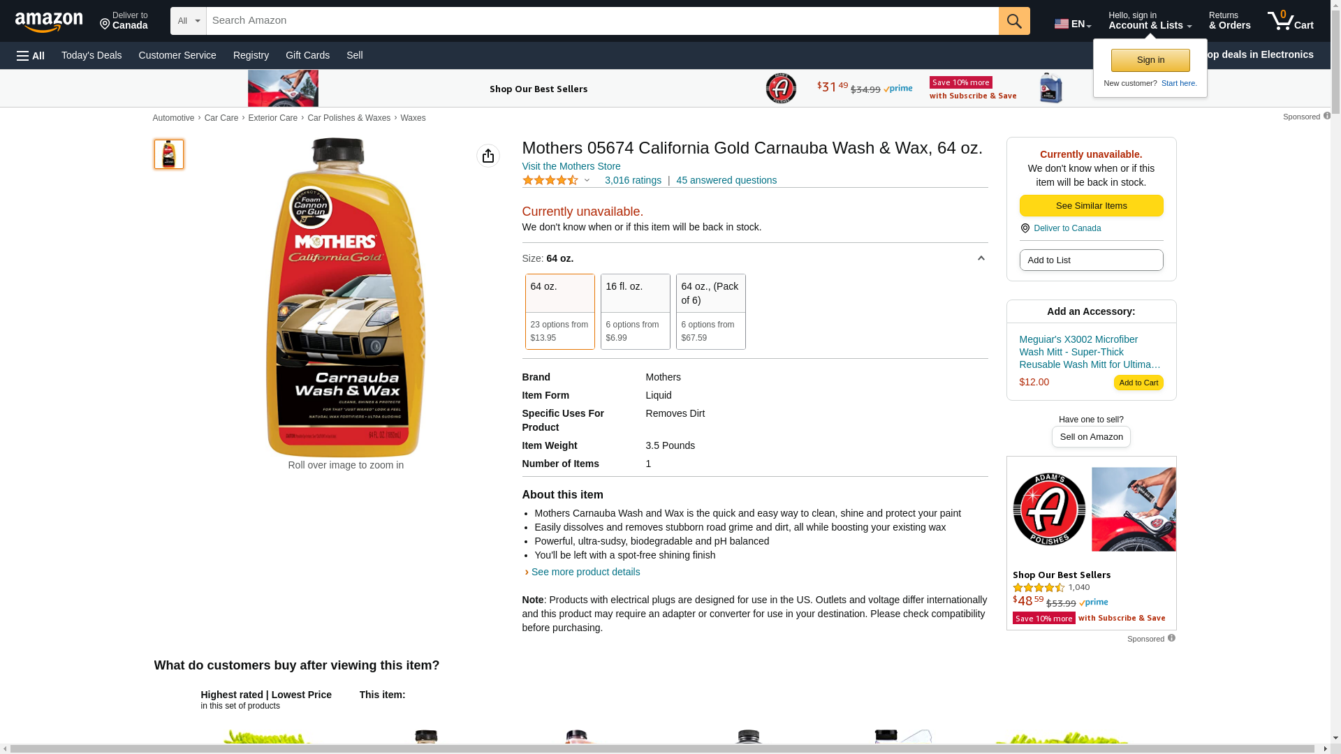 | Feature | Mothers 05674 California Gold Carnauba Wash & Wax - 64 oz |