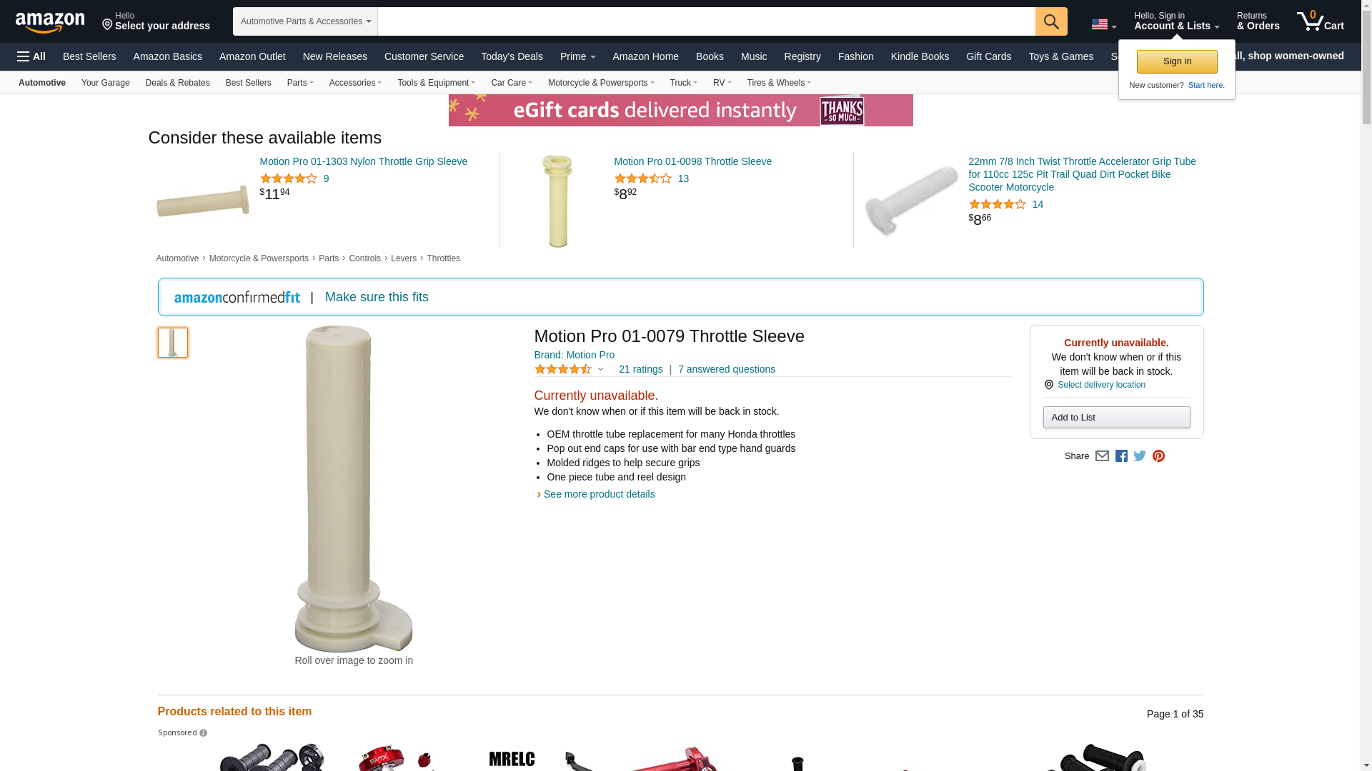 Replace worn or broken twist throttle sleeves on most popular models with Motion Pro's replacement throttle sleeves. Also Fits: Honda CR250R 1989-2007, Honda CR500R 1989-2001, Husaberg TE 250 2012, Husaberg TE 300 2012, Husqvarna TC 125 2014-2016, Husqvarna TC 250 2014-2016, Husqvarna TC 85 2014-2017, Husqvarna TE 125 2014-2016, Husqvarna TE 250 2014-2016, Husqvarna TE 300 2014-2016, KTM 105 SX 2004, KTM 105 SX 2006-2011, KTM 105 XC 2008-2010, KTM 125 EXC 1998-2003, KTM 125 SX 1998-2010, KTM 125 SX 2012-2016, KTM 144 SX 2007-2008, KTM 150 SX 2009-2016, KTM 150 XC 2010-2014, KTM 200 EXC 1998-2005, KTM 200 MXC 1998-2003, KTM 200 SX 2003-2004, KTM 200 XC 2006-2009, KTM 200 XC-W 2006-2016, KTM 250 EXC 1997-2005, KTM 250 SX 1997-2016, KTM 250 XC 2006-2016, KTM 250 XC-W 2006-2007, KTM 250 XC-W (E-Start) 2008-2016, KTM 300 EXC 1997-2005, KTM 300 XC 2006-2016, KTM 300 XC-W 2006-2007, KTM 300 XC-W (E-Start) 2008-2016, KTM 300 XC-W Six Days 2014-2016, KTM 360 EXC 1997, KTM 360 MXC 1997, KTM 360 SX 1997, KTM 380 EXC 1998-2002, KTM 380 MXC 1998-2002, KTM 380 SX 1998-2002, KTM 85 SX 2003-2017, KTM 85 XC 2008-2009, KTM Freeride 250 R 2015-2017