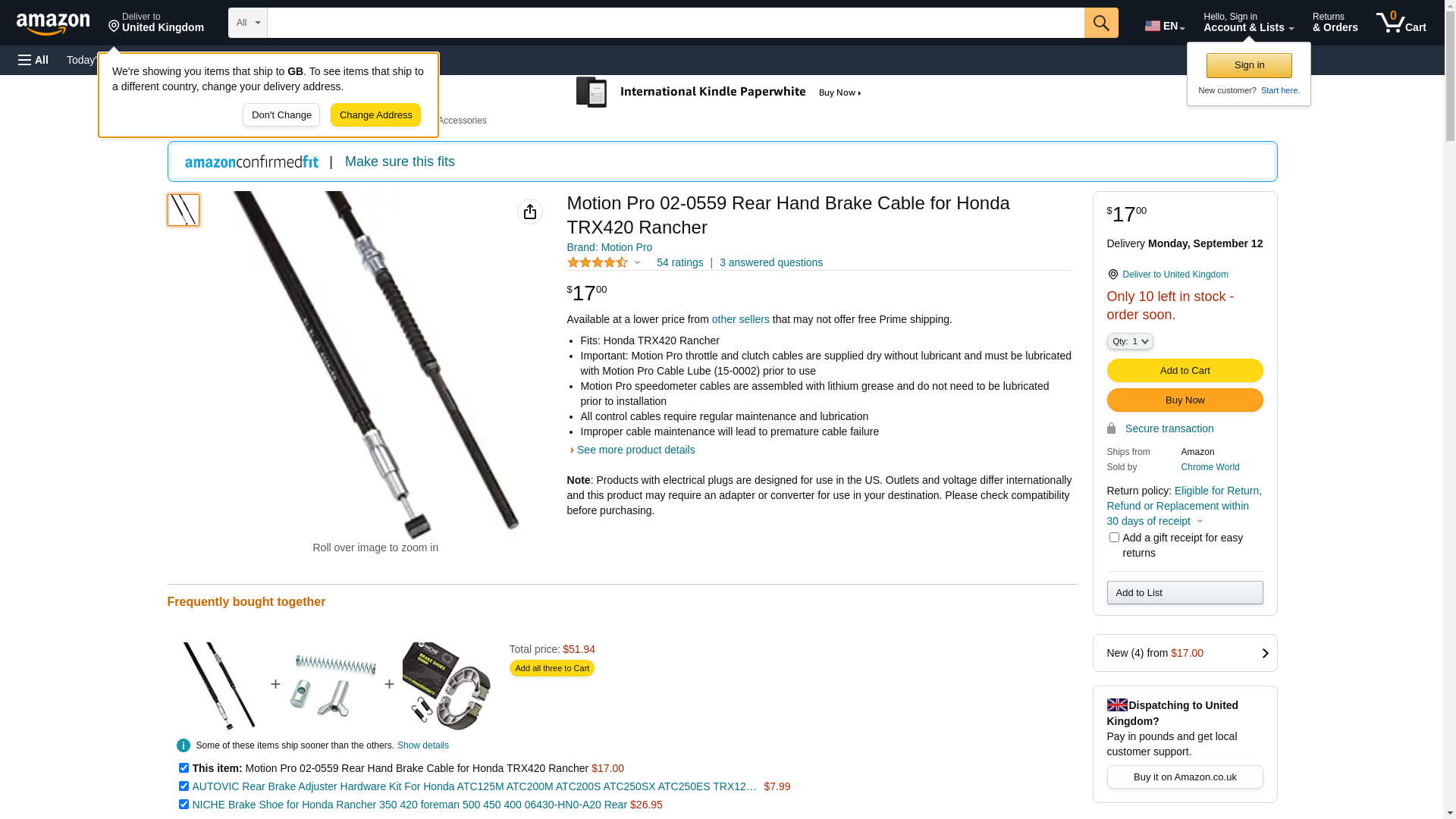 Motion Pro 02-0559 Rear Hand Brake Cable for Honda TRX420 Rancher