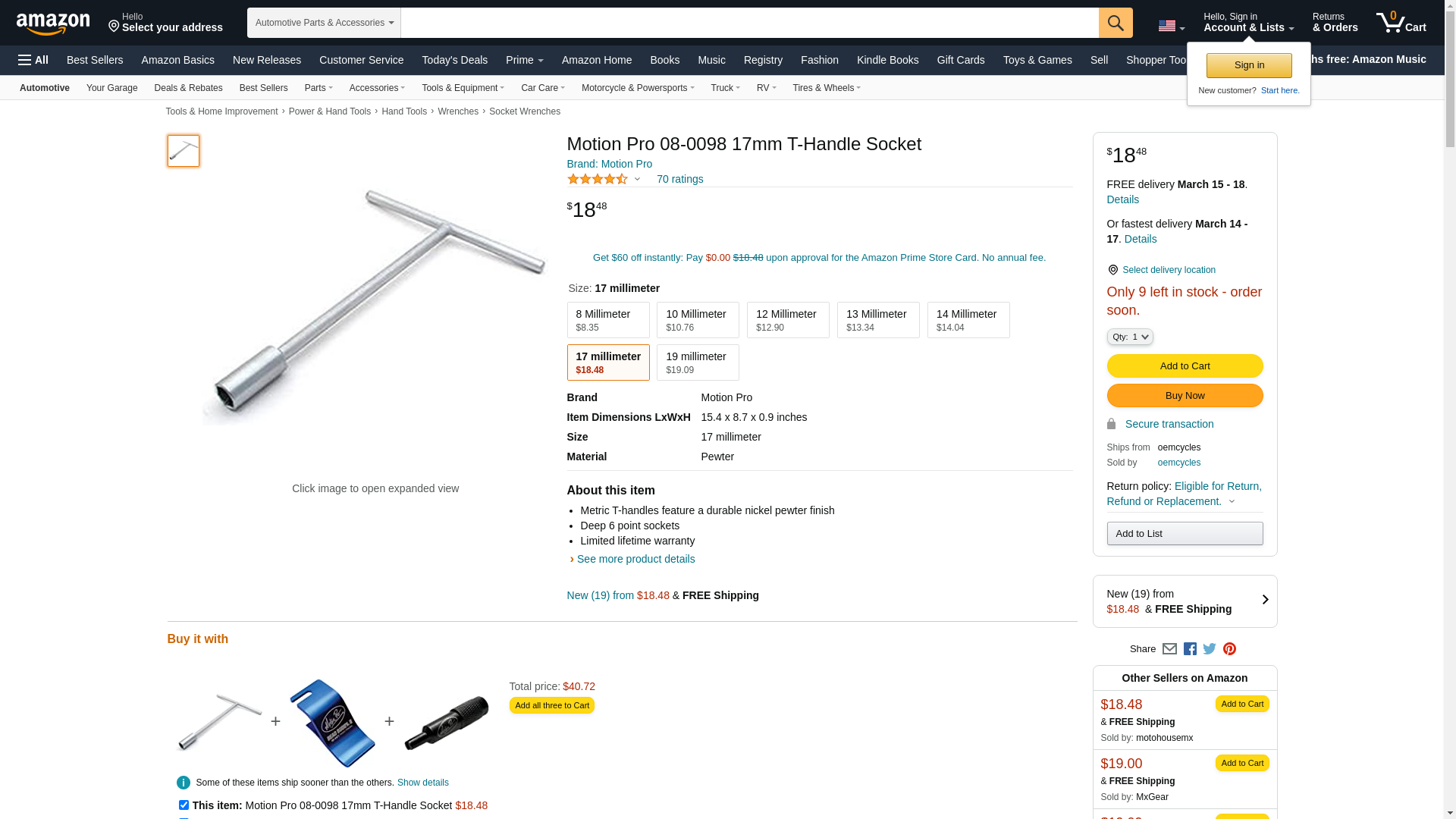 Motion pro 08-0098 t-handle socket 17mm (08-0098)