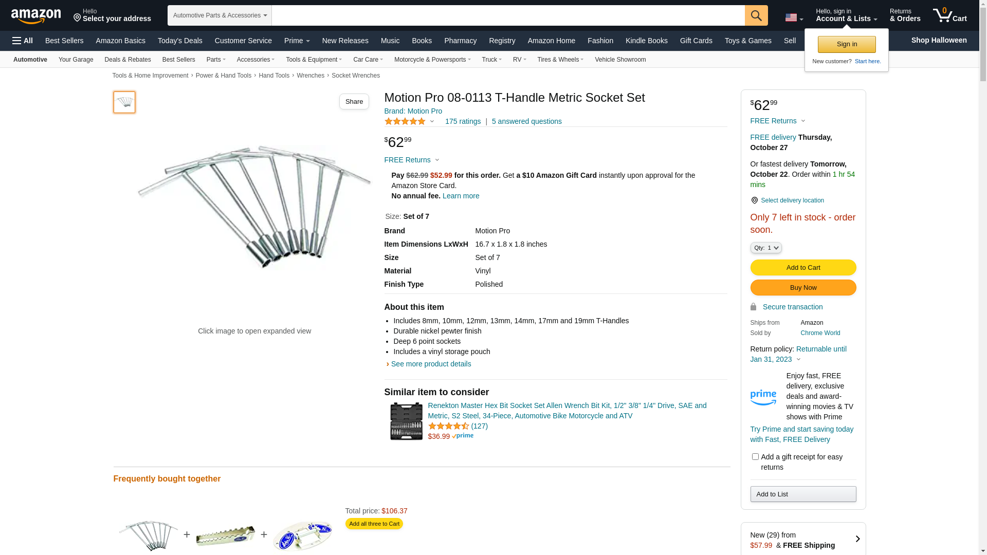 Motion Pro 08-0113 T-Handle Metric Socket Set
