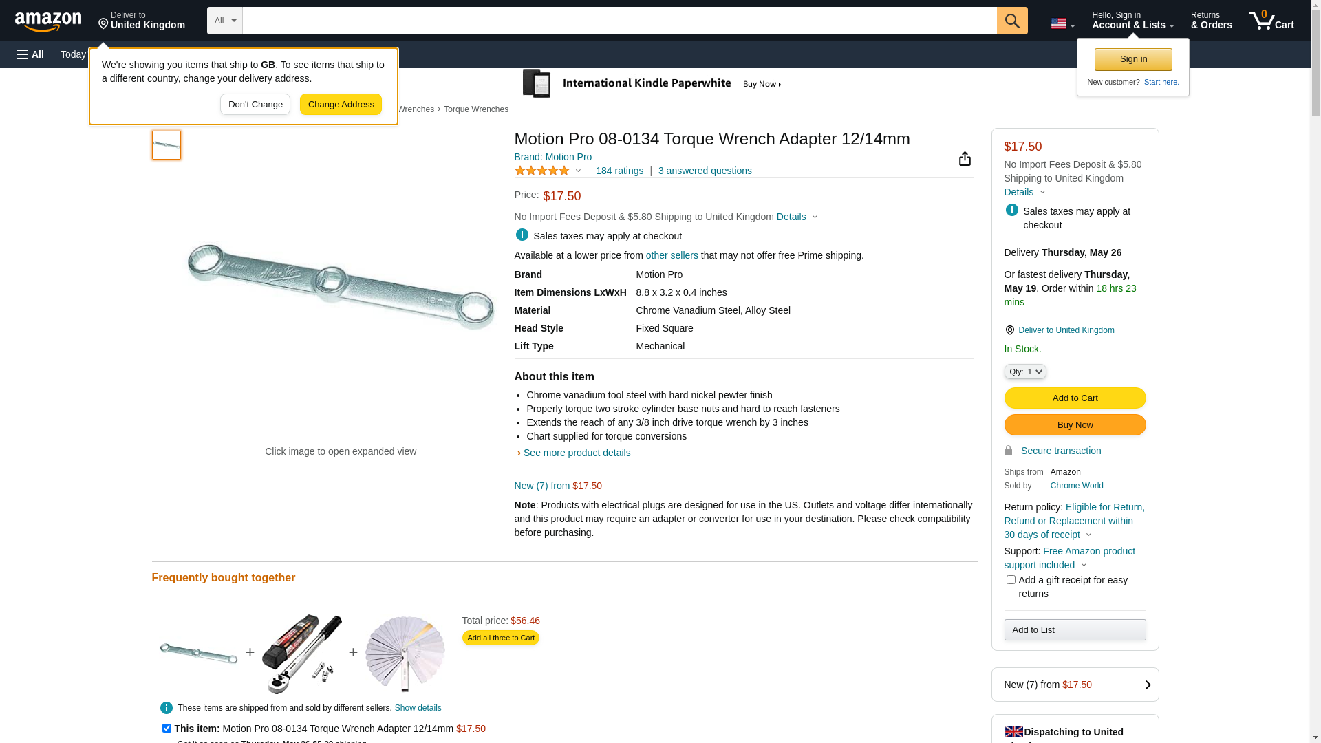 MOTION PRO TORQUE WRENCH ADAPTOR, Manufacturer: MOTION PRO, Manufacturer Part Number: 08-0134-AD, Condition: New, Stock Photo - Actual parts may vary.