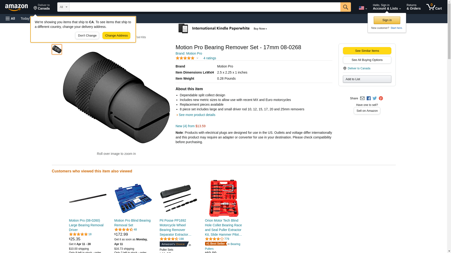 <br />Brand: MOTION PRO <br />MPN:08-0268 <br />Bearing Remover, 17mm