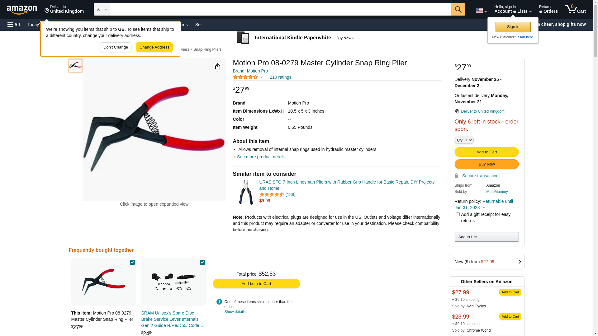 Motion Pro 08-0279 Master Cylinder Snap Ring Plier