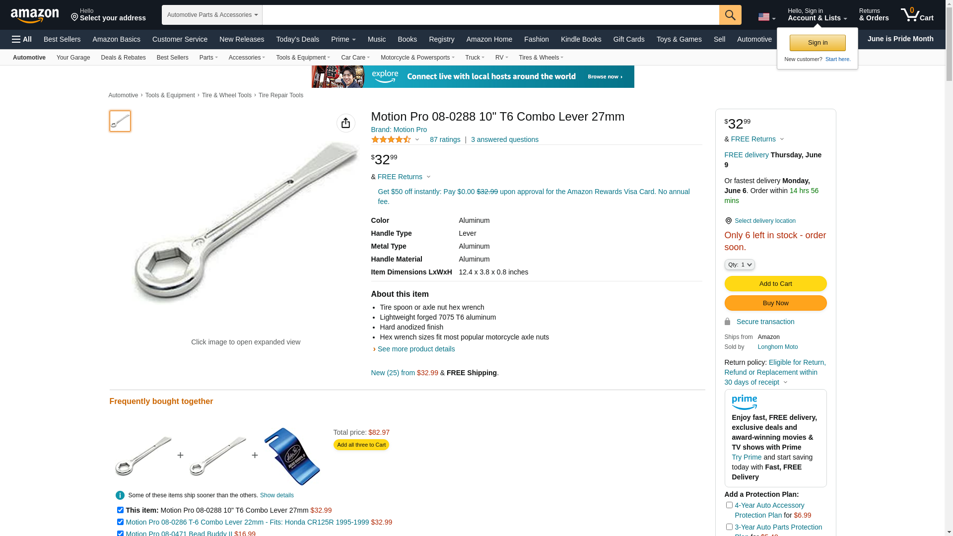 430 RR 2015, T-6 Combo Lever (08-0288) by Motion Pro. Tire lever with 27mm wrench to remove rear axle nut. Forged 7075 T-6 aluminum. Can use 08-0327 T6 drive adapter with 08-0387 socket for removing 22 mm front axle nuts(Check front axle nut size before ordering 08-0327 and 08-0387). Made from lightweight forged 7075 T-6 aluminum construction with a hard-anodized finish It has a tire spoon on one end and hex wrench on the other. Perfect size for any fanny pack.