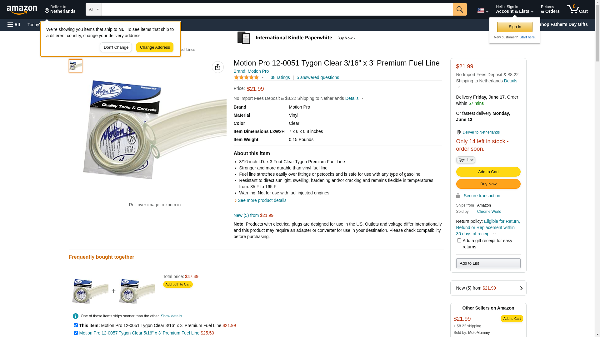 | Feature | 3/16-inch I.D. x 3 Foot Clear Tygon Premium Fuel Line |