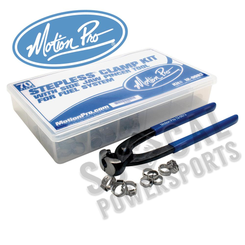 - Convenient kit includes 80 pcs of hardware, a Motion Pro Side Jaw Pincer tool, and a convenient fuel line clamp size chart