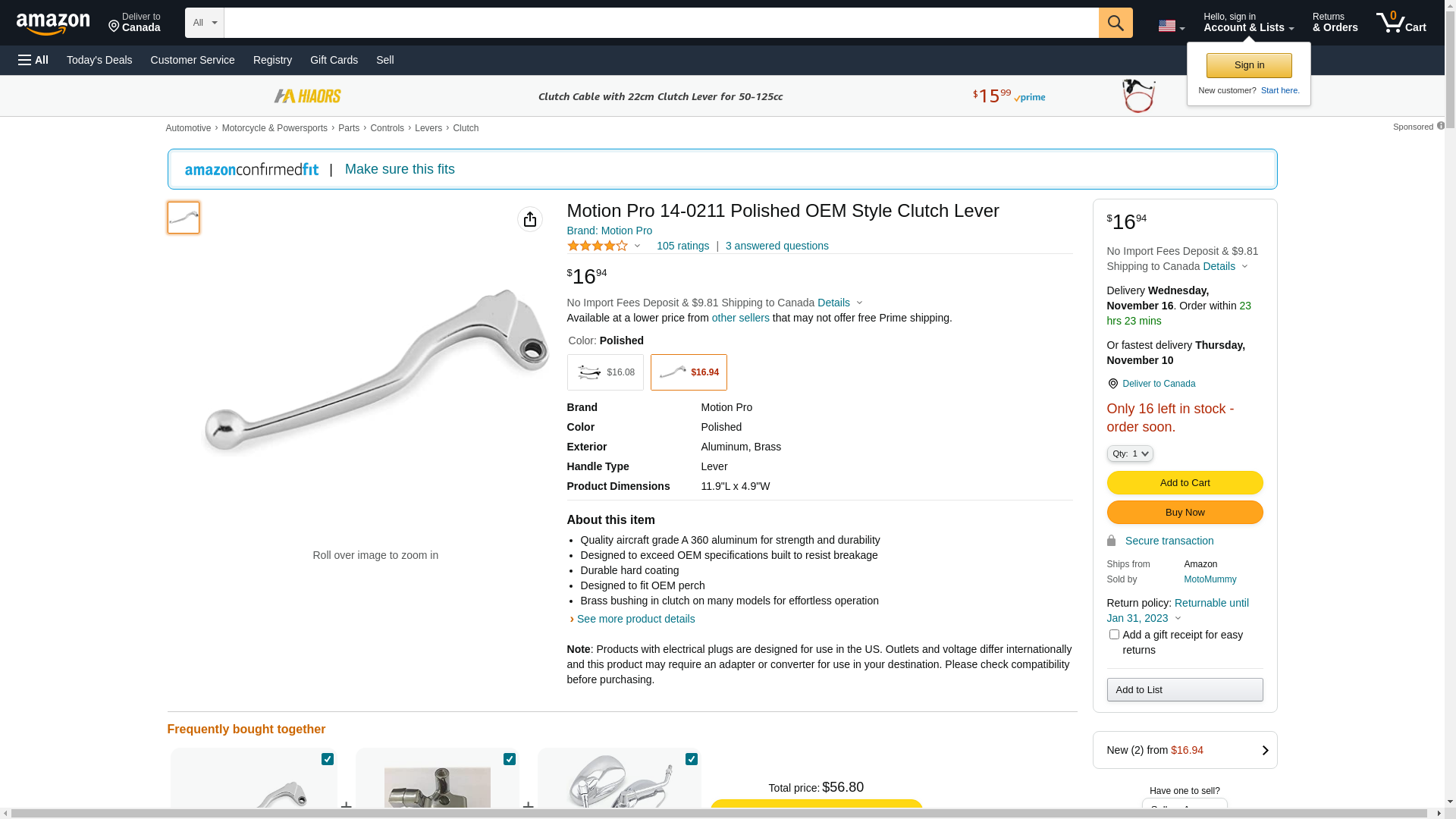 Motion Pro 14-0211 Polished OEM Style Clutch Lever
