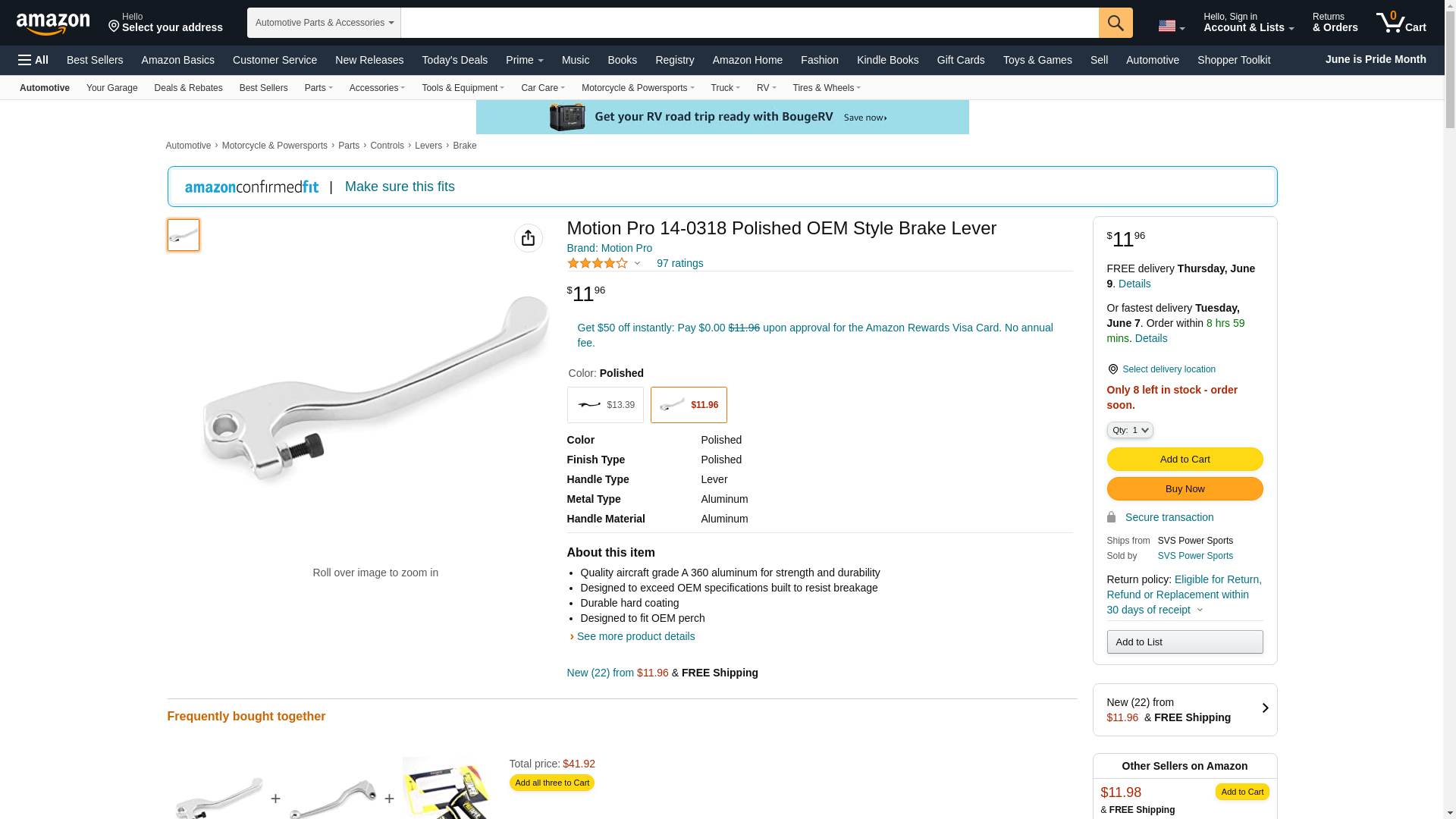 Motion Pro 14-0318 Polished OEM Style Brake Lever