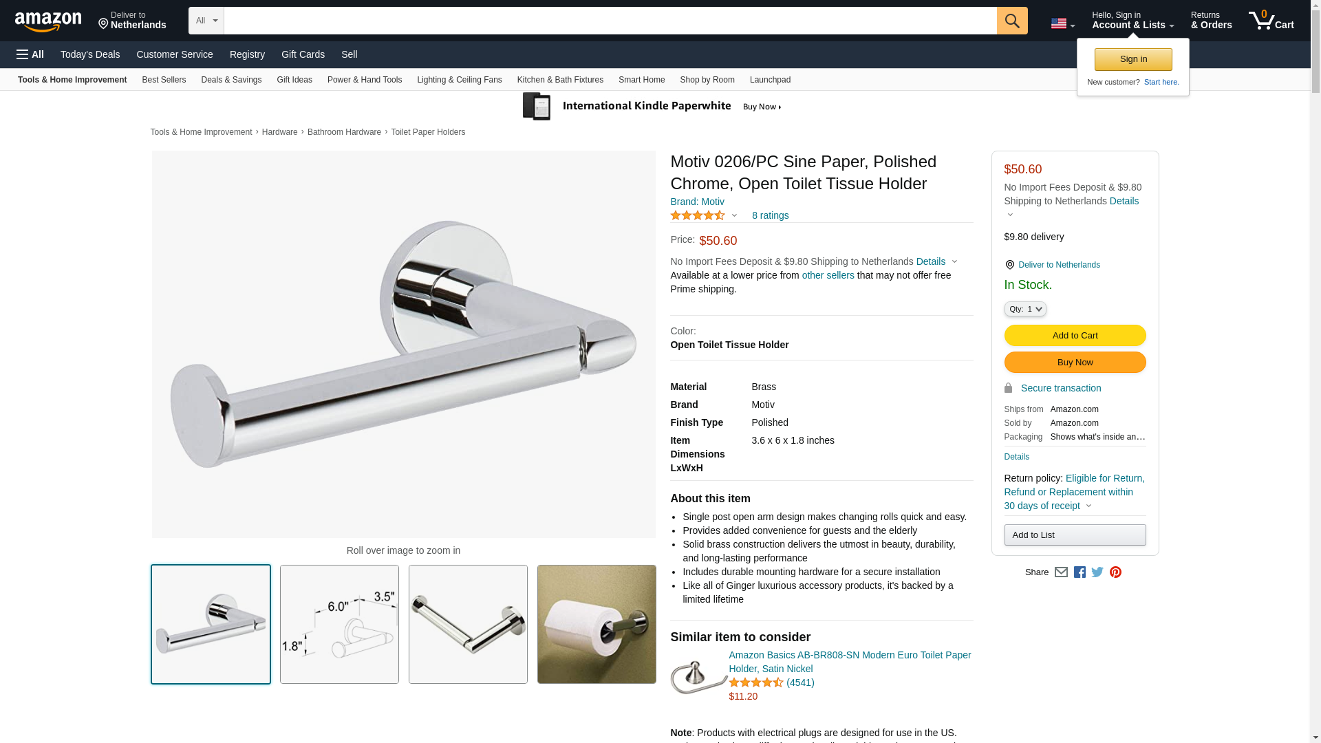 0206/PC Finish: Polished Chrome Features: -Open toilet paper holder.-Wall mount.-Universal design. Construction: -Solid forged brass construction. Color/Finish: -Polished chrome finish.-Satin nickel finish. Dimensions: -Overall dimensions: 1.8'' H x 6'' W x 3.6'' D. Collection: -Sine collection. Warranty: -Motiv provides limited warranty.