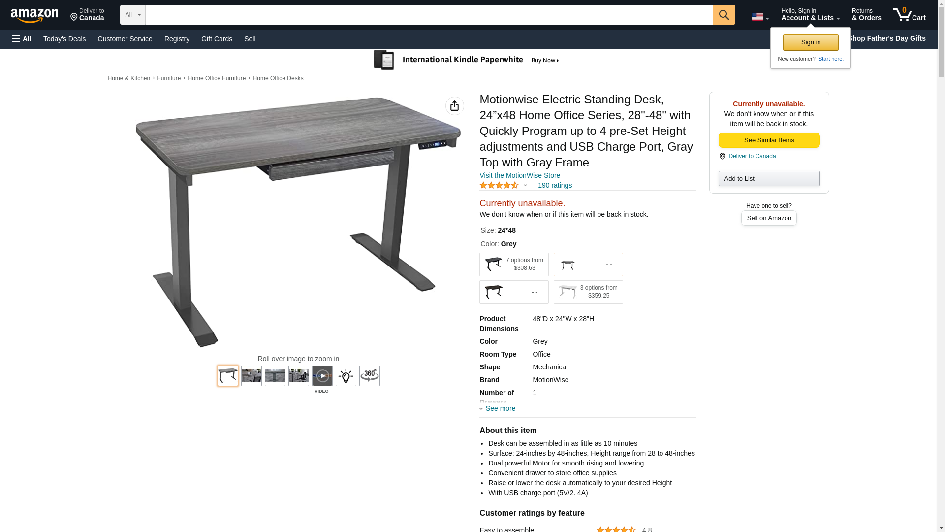Motionwise Electric Standing Desk, 24”x48 Home Office Series, 28"-48" with Quickly Program up to 4 pre-Set Height adjustments and USB Charge Port, Gray Top with Gray Frame