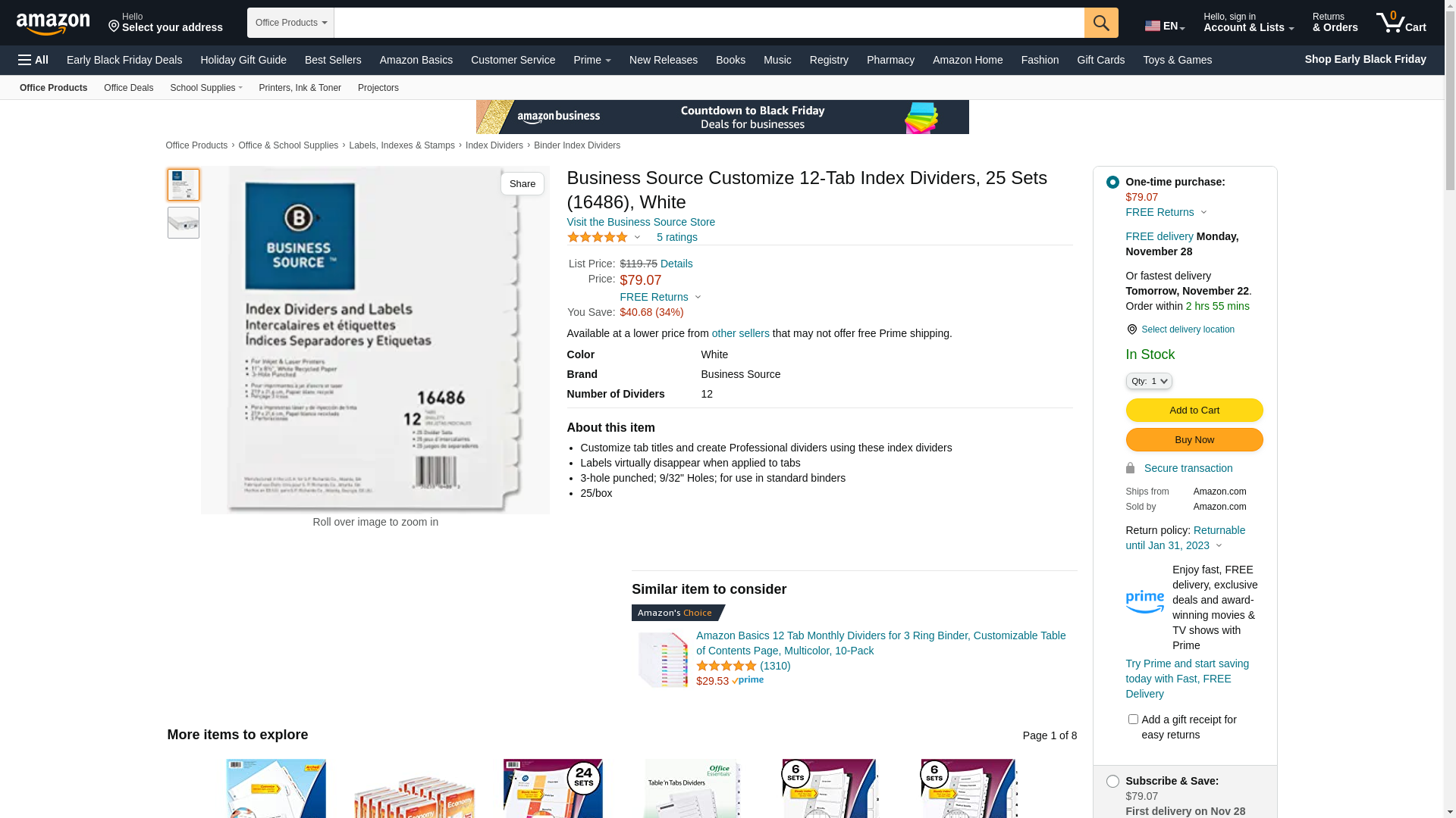 Business Source Customize 12-Tab Index Dividers, 25 Sets (16486)