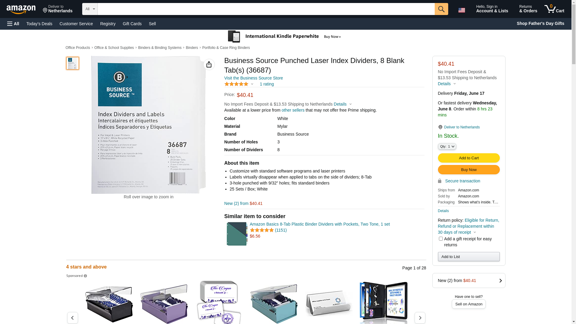 Business Source Punched Laser Index Dividers, 8 Blank Tab(s) (36687)