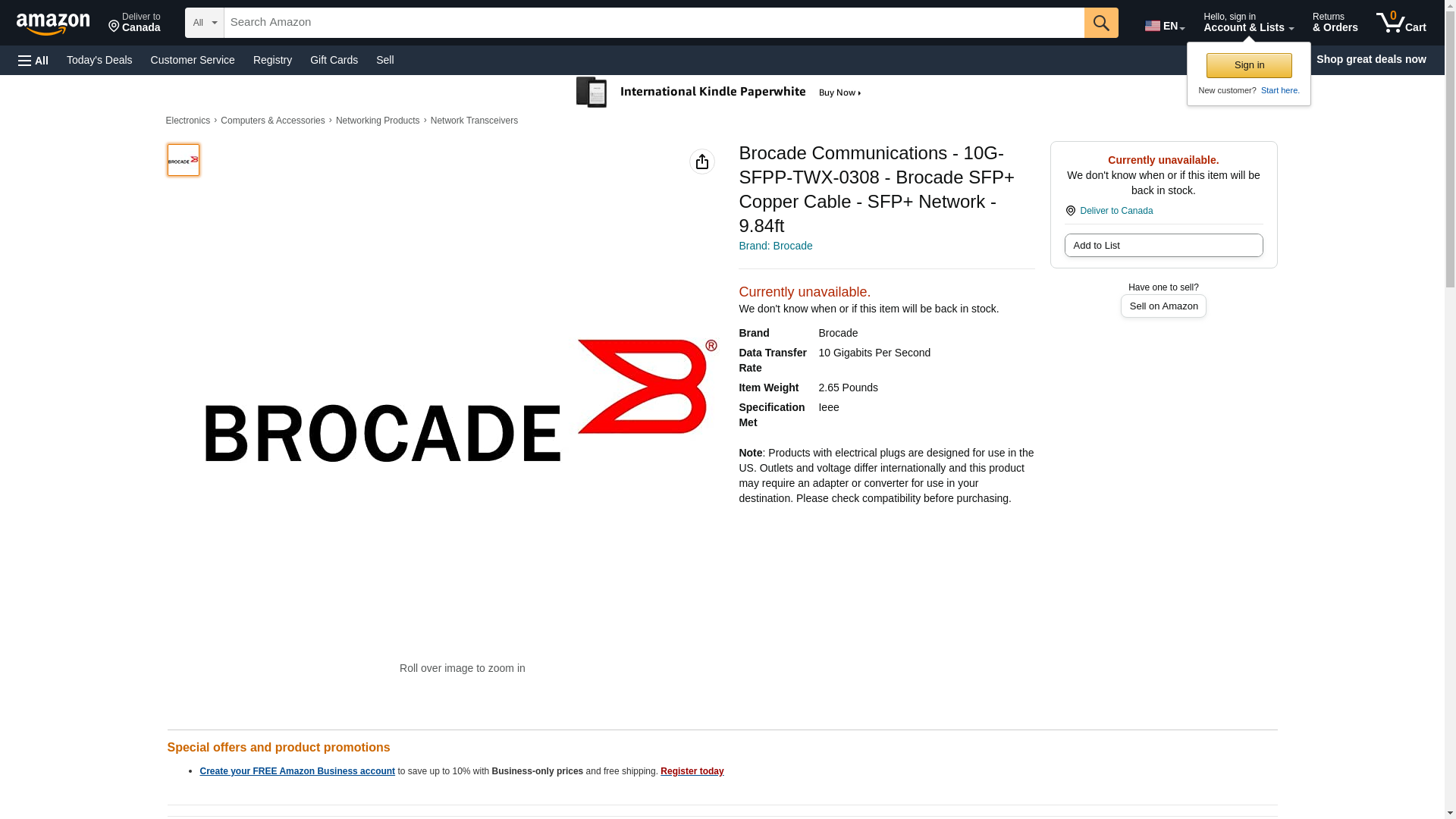 Brocade Communications SFP+ Copper Cable 10G-SFPP-TWX-0308