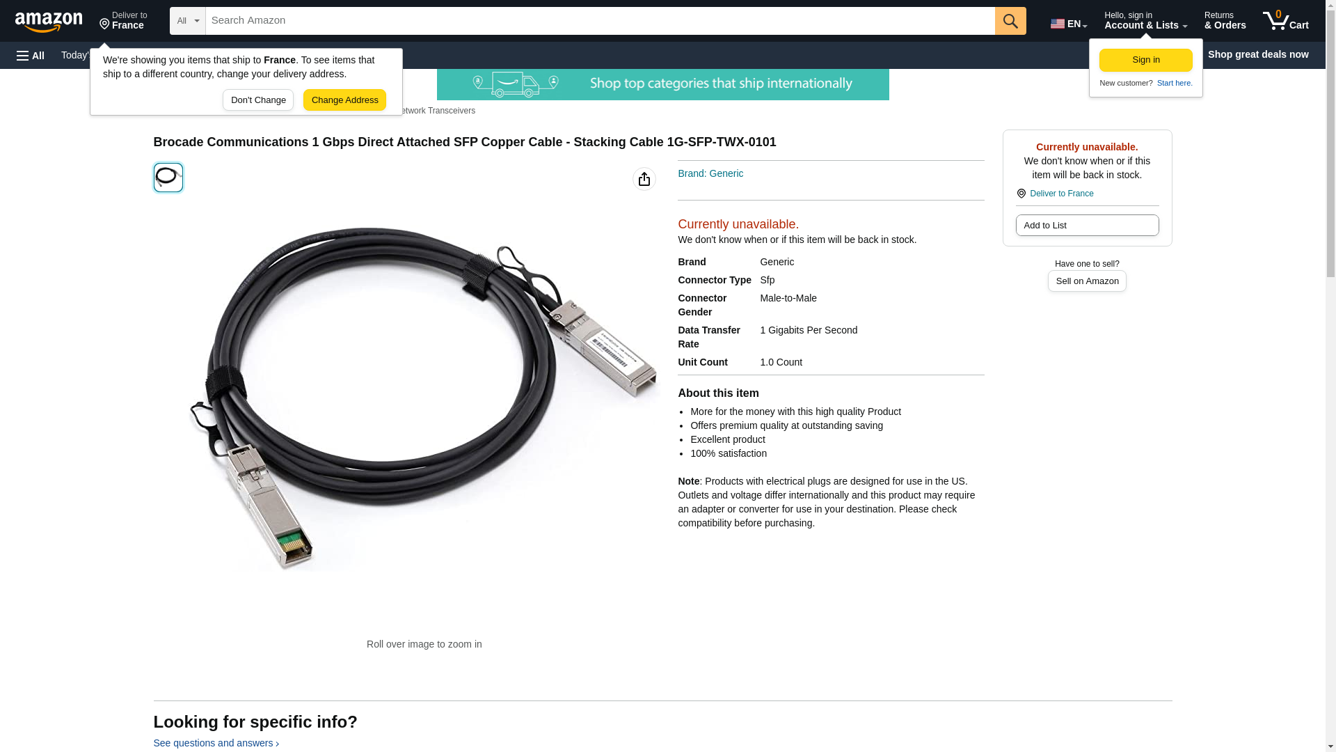 | Feature | 1M Cbl Direct Attached-1G Sfp Copper |