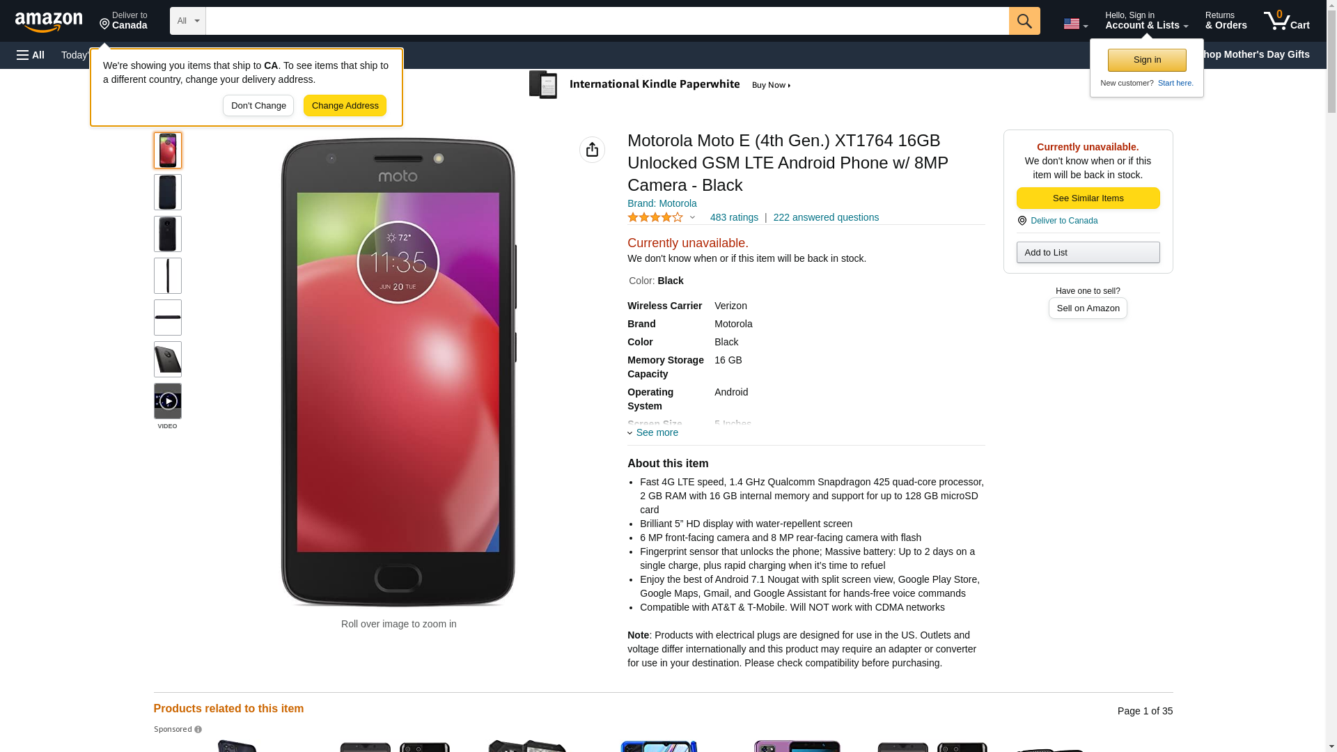 Motorola Moto E (4th Gen.) XT1764 16GB Unlocked GSM LTE Android Phone w/ 8MP Camera - Black