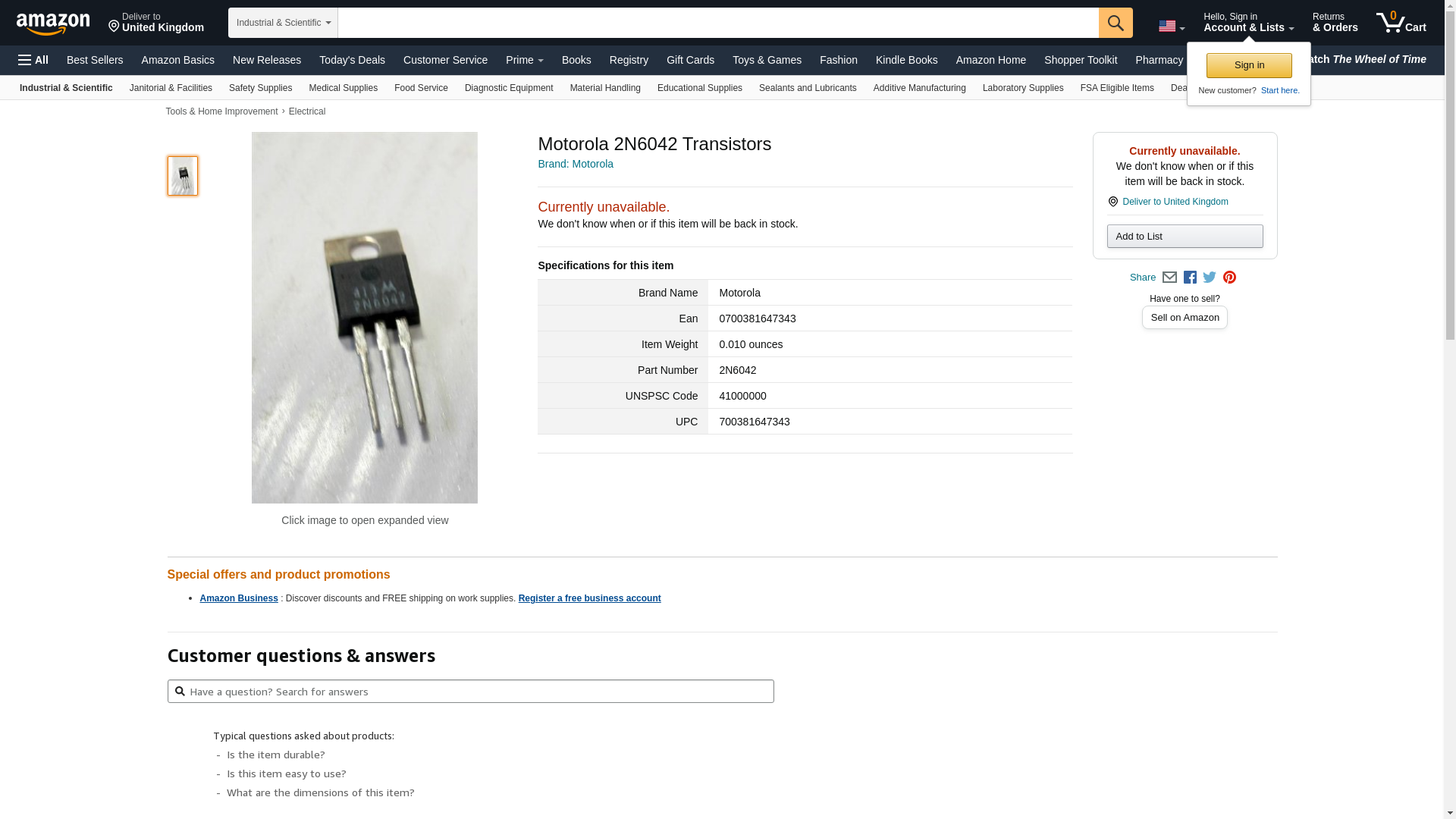 | 2N6042 | 1 | 69 | 1 | 1 @ $0.99, 10 @ $0.99, 100 @ $0.99, 1000 @ $0.99, 10000 @ $0.99 |