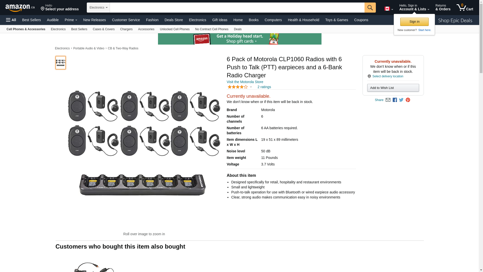 | ToolUp.com | MOTOROLA CLP1060 | 1 | False | 1 | 1 @ $329.00 |
