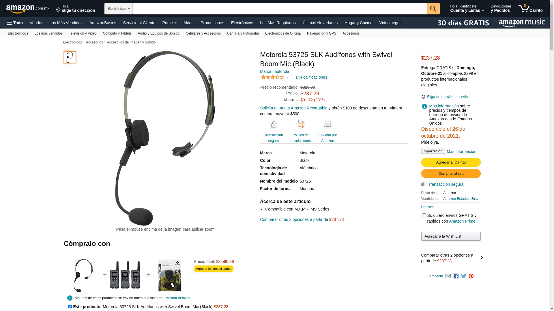 Motorola 53725 SLK Headset with Swivel Boom Mic (Black) (Discontinued by Manufacturer)