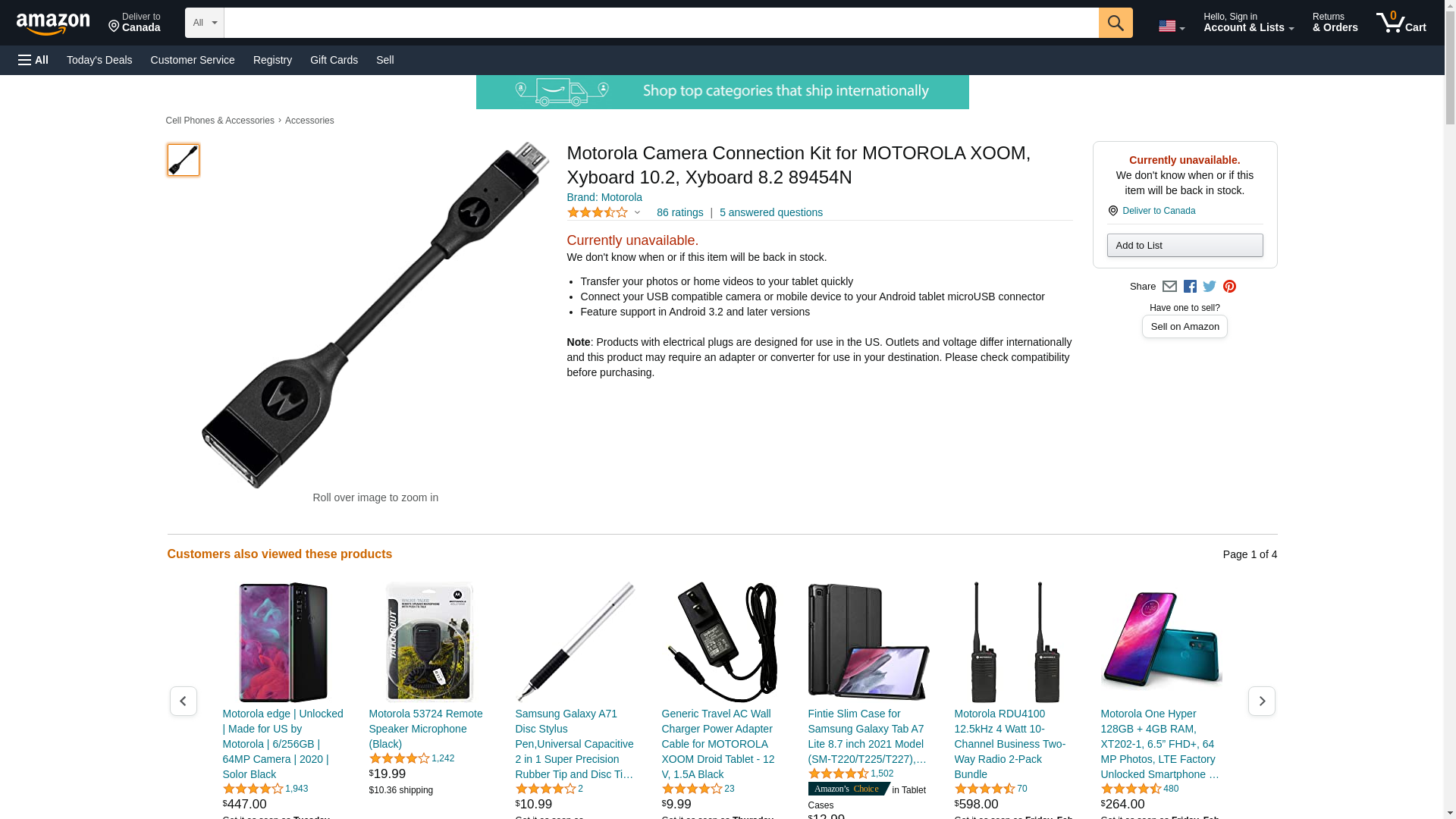 Motorola Camera Connection Kit for MOTOROLA XOOM, Xyboard 10.2, Xyboard 8.2 89454N