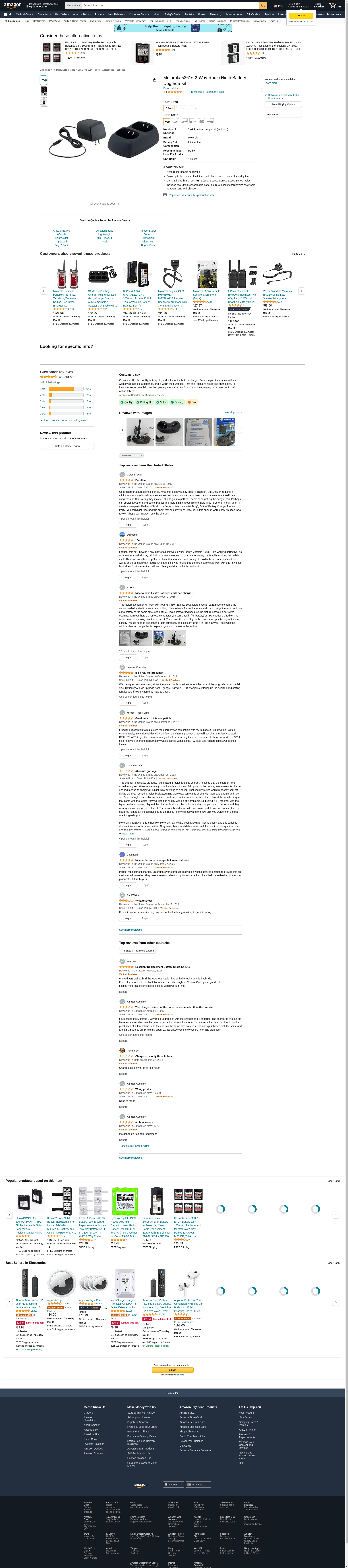 MTR53616 - MOTOROLA 53616 Rechargeable NiMH Battery Upgrade Kit for Motorola FV700, SX500, SX600, SX900 Series 2-Way Radios