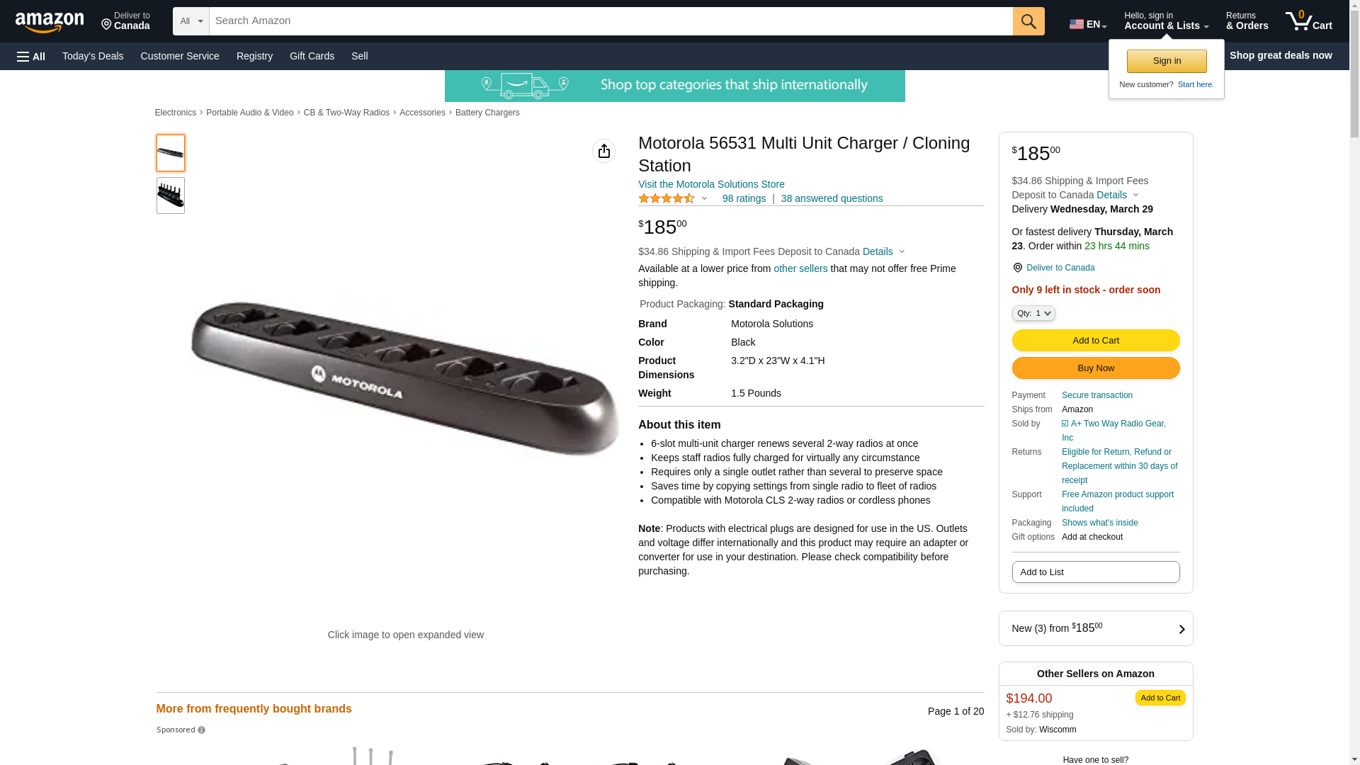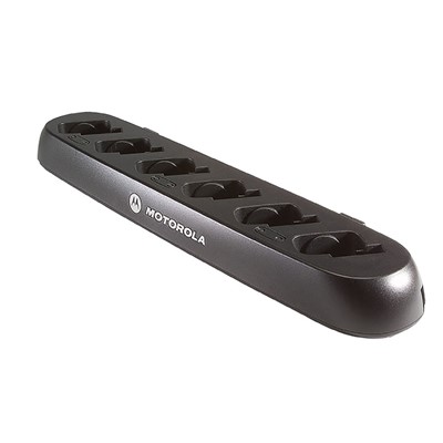 - 6-slot multi-unit charger renews several 2-way radios at once