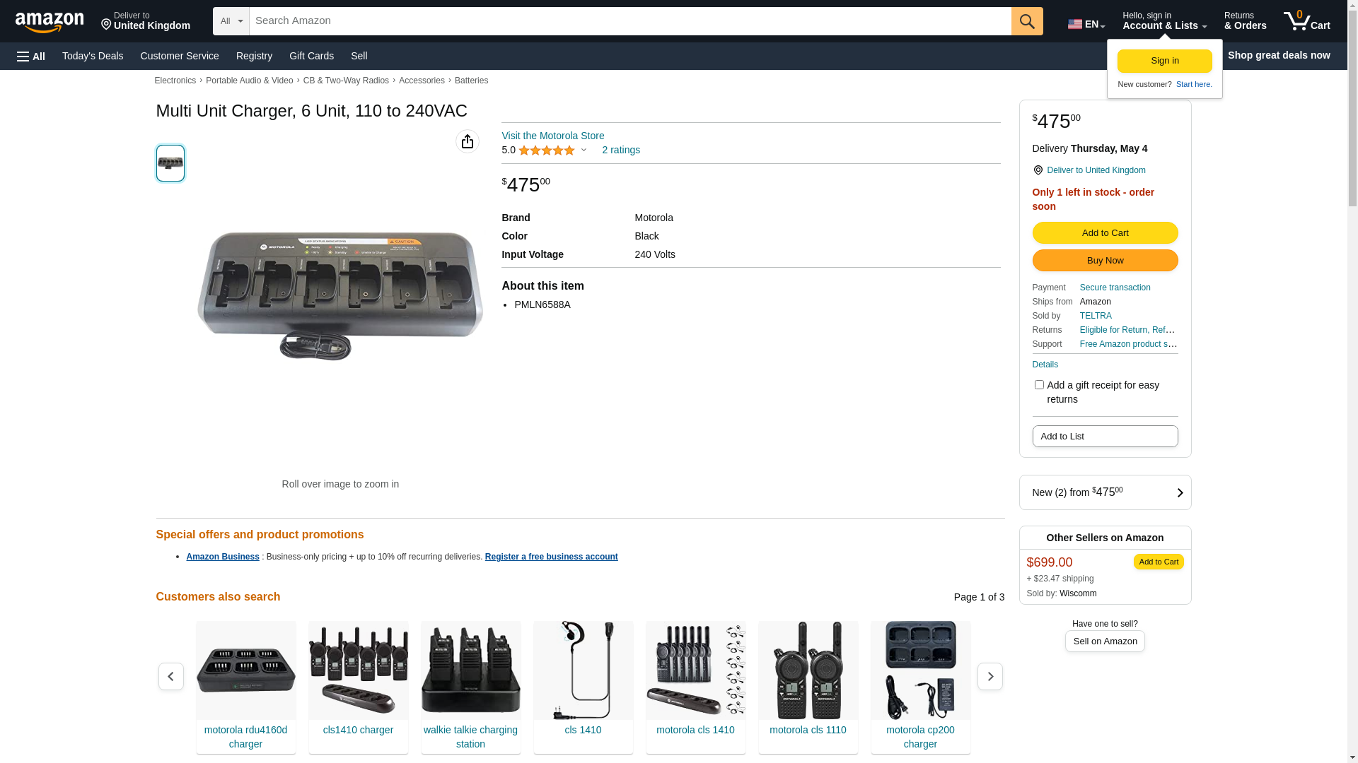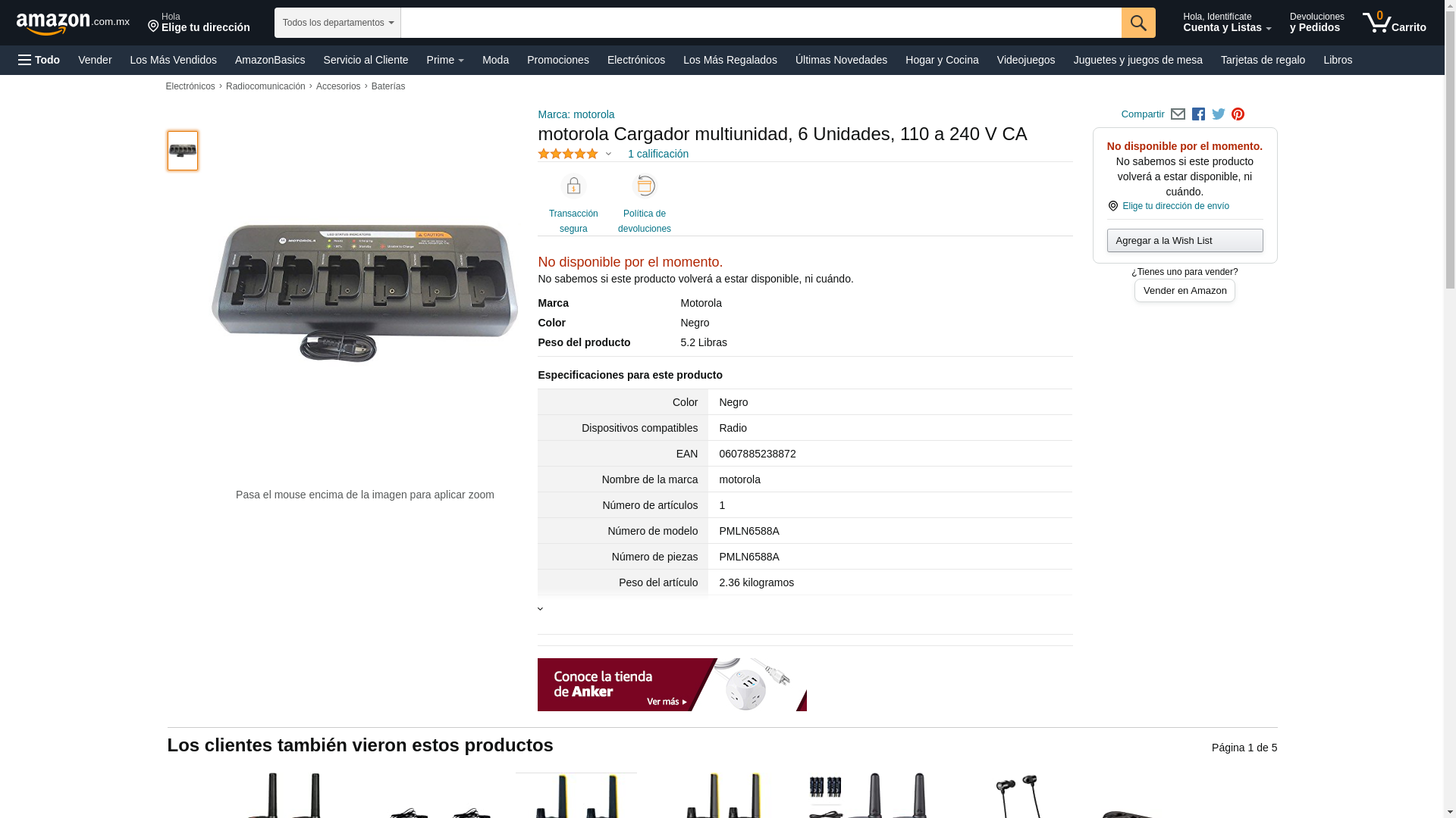 Motorola PMLN6588A Multi Charger, 6 Unit, 110 to 240VAC Lighting, Black