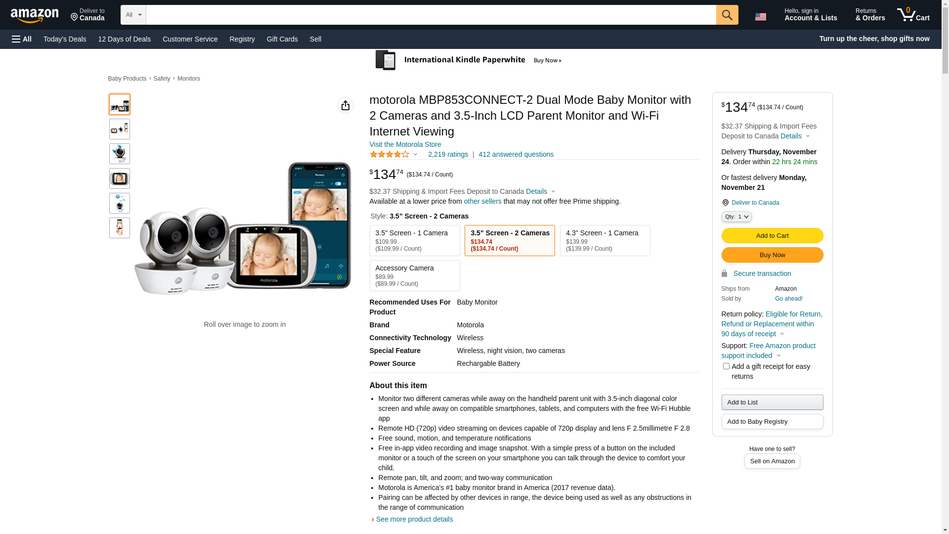 Best Buy: Motorola Video Baby Monitor with (2) 2.4GHz Cameras and 3.5" Screen Black/White MBP853CONNECT-2
