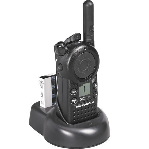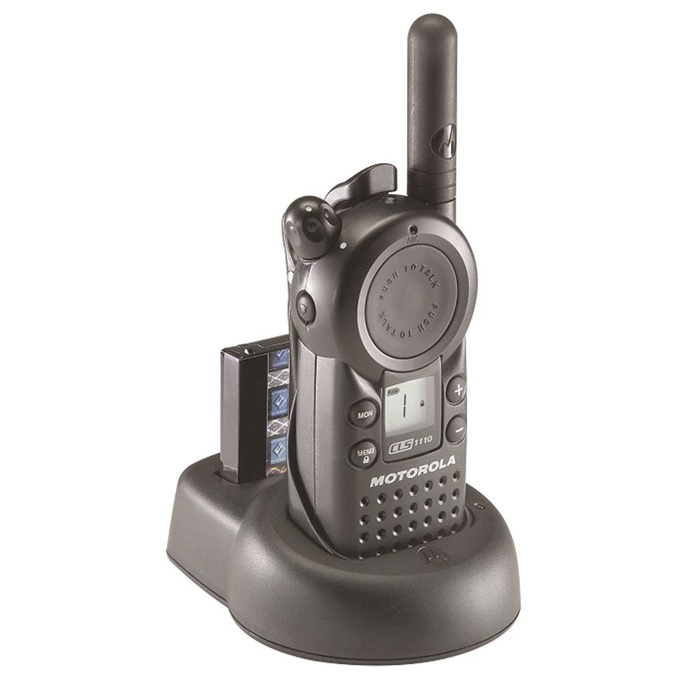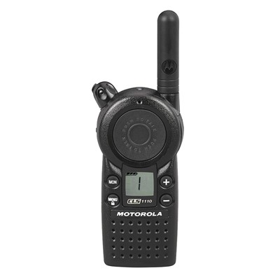 Delivering remarkable functionality at the push of a button, the CLS 1110TM on-site two-way radio is designed for the fast pace of business. It operates on a single channel with a choice of 56 business-exclusive frequencies for enhanced voice quality, privacy and reliability. Flexible choice of frequencies Operates on 56 business-exclusive frequencies. Private line codes (PLCs) 121 interference eliminator codes maximize options through 83 digital and 38 analog private lines. Simplified cloning Quickly copies settings from radio to radio when used with accessory. Battery versatility Choice of rechargeable lithium ion or backup AAA, with accessory. LCD display Shows information, such as battery gauge. Long battery life Rechargeable lithium ion battery provides up to 18 hours of battery life. Drop-in charging Keeps Motorola CLS Series radios centrally located and charged. Keypad lock Helps prevent accidental changes to settings.