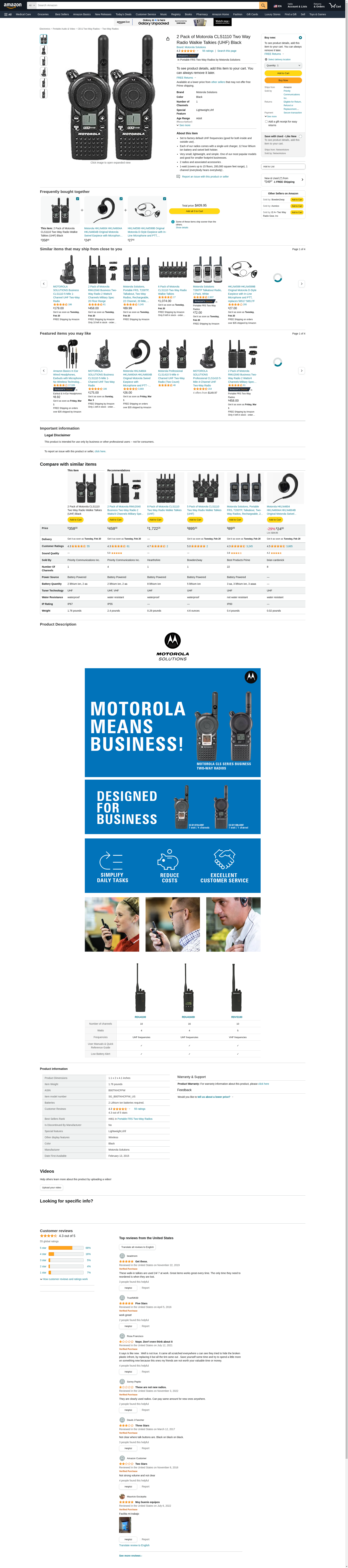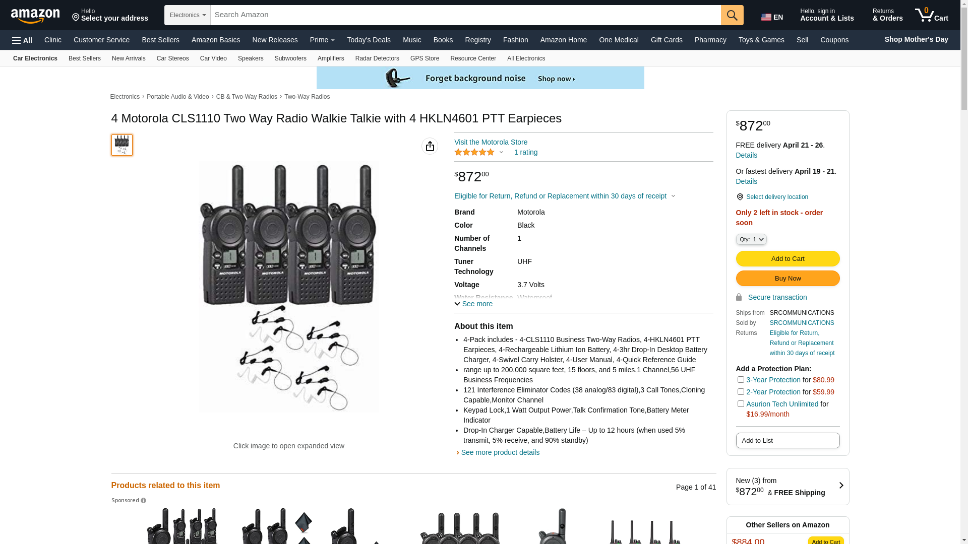- Bundle Includes: 2 x Motorola CLS1110 UHF 1W 1-Channel 2-Way Radio, 2 x Motorola HKLN4604 Swivel Earpiece with In-Line Microphone & Push-to-Talk