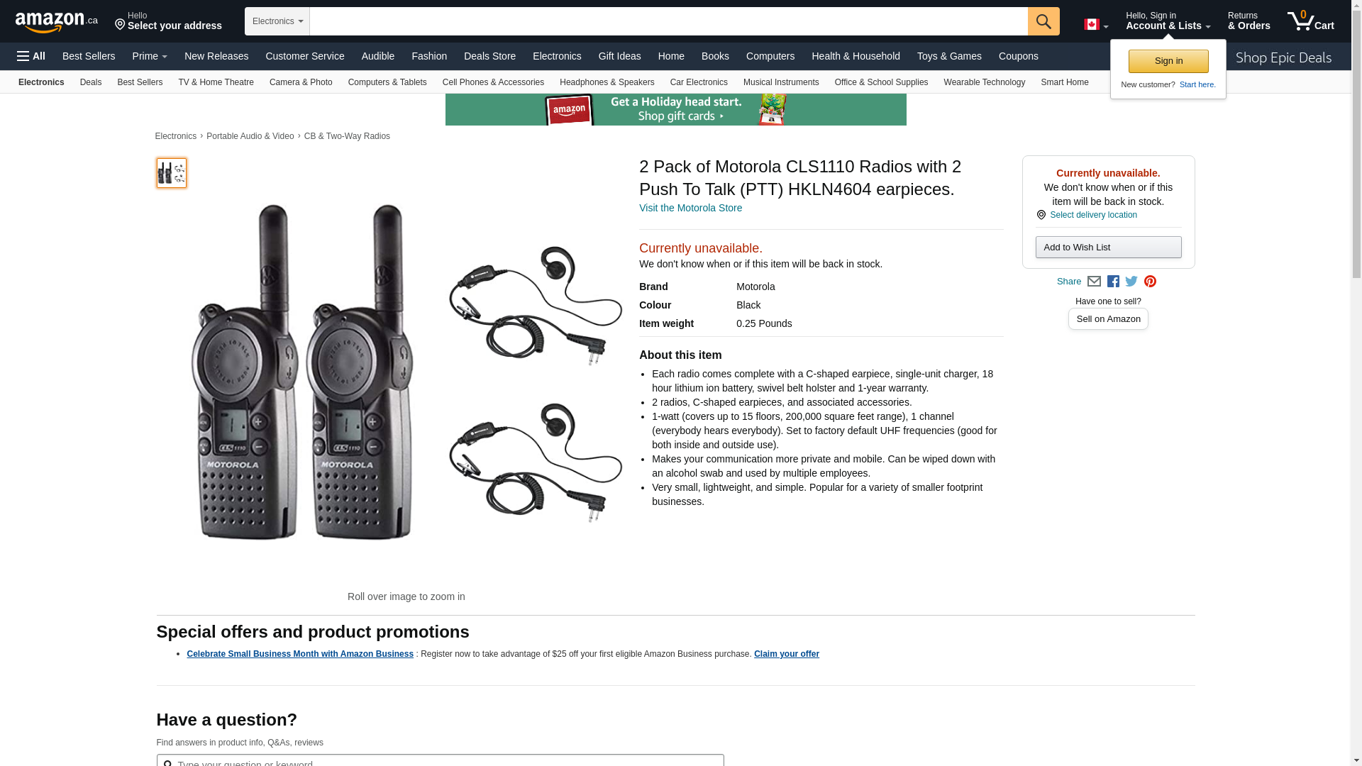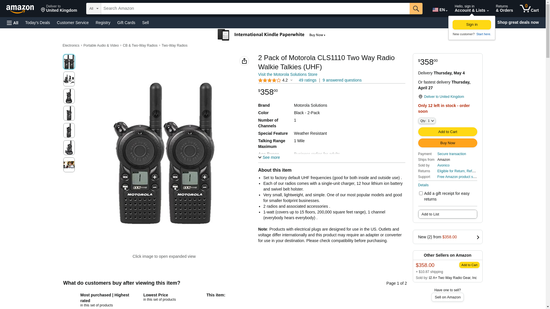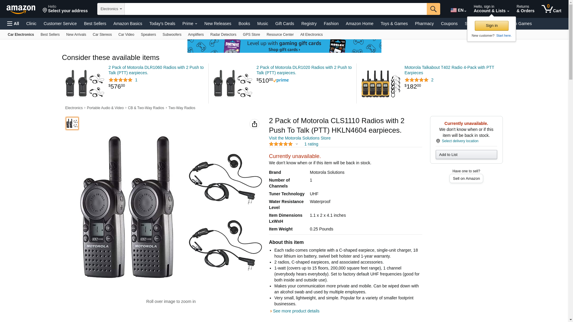 | buytwowayradios.com | CLS1110 | 1 | Out of stock | 1 | 1 @ $179.00 |
