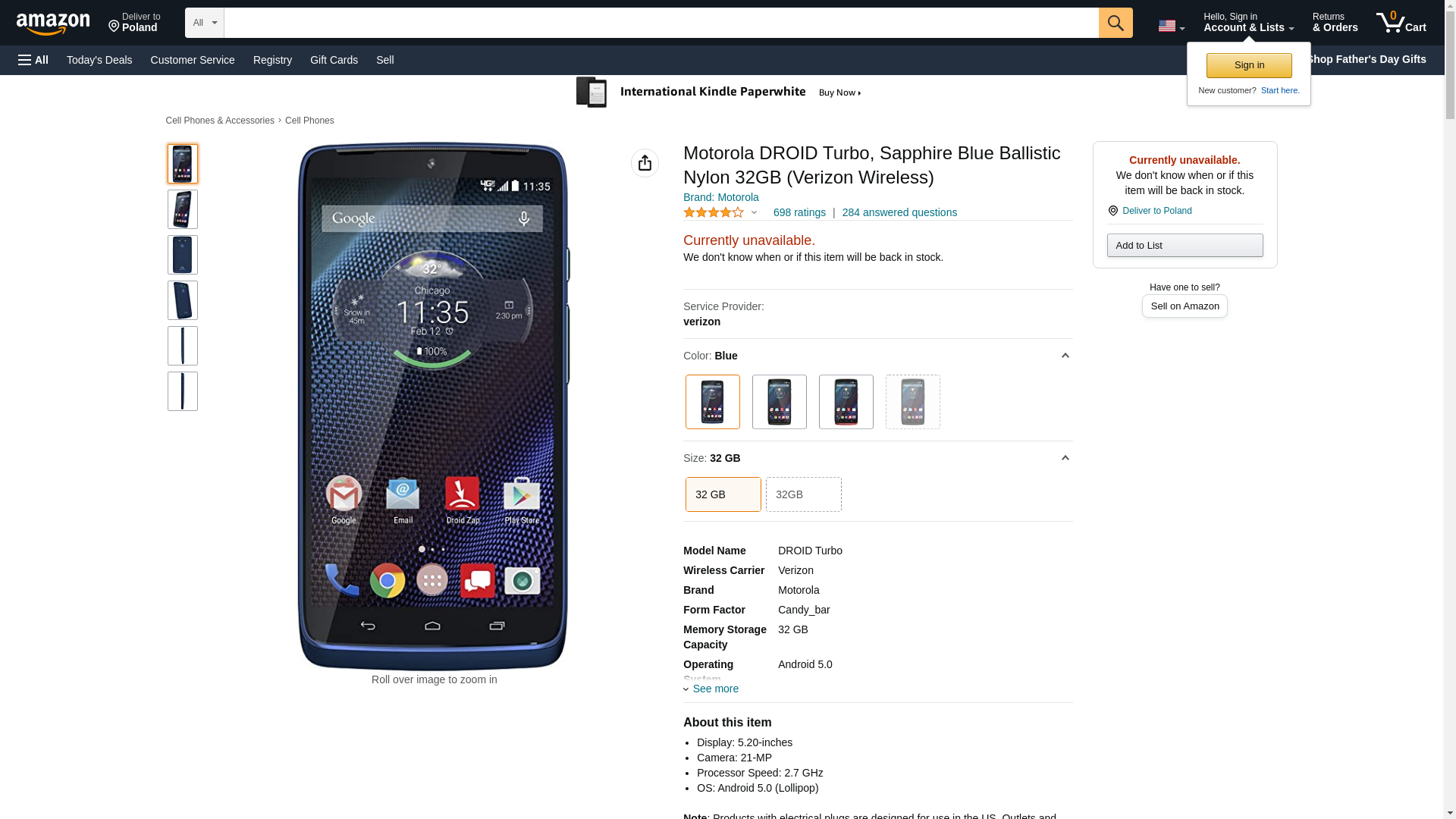 Motorola DROID Turbo, Sapphire Blue Ballistic Nylon 32GB (Verizon Wireless)