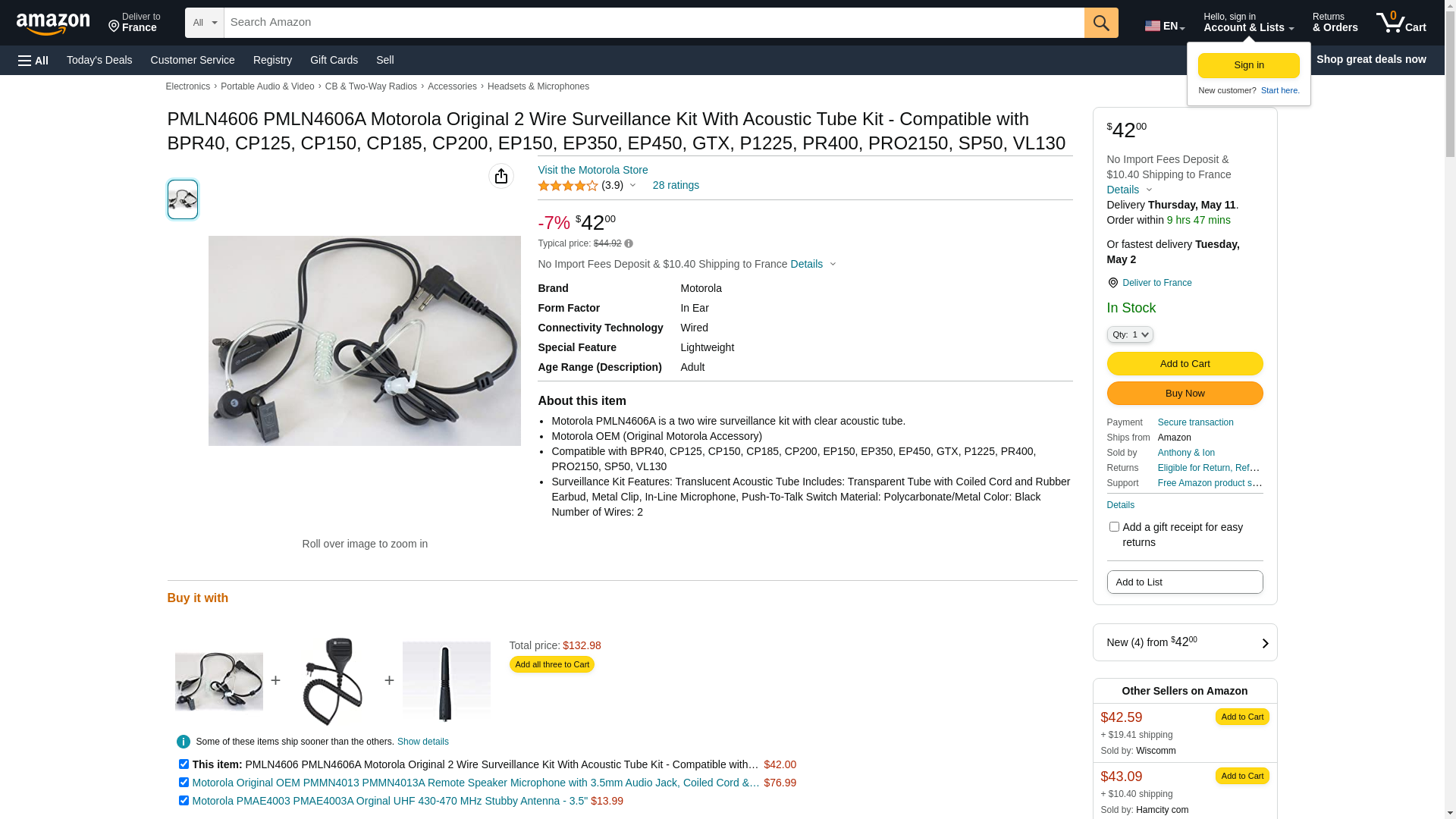 - Motorola PMLN4606A is a two wire surveillance kit with clear acoustic tube.