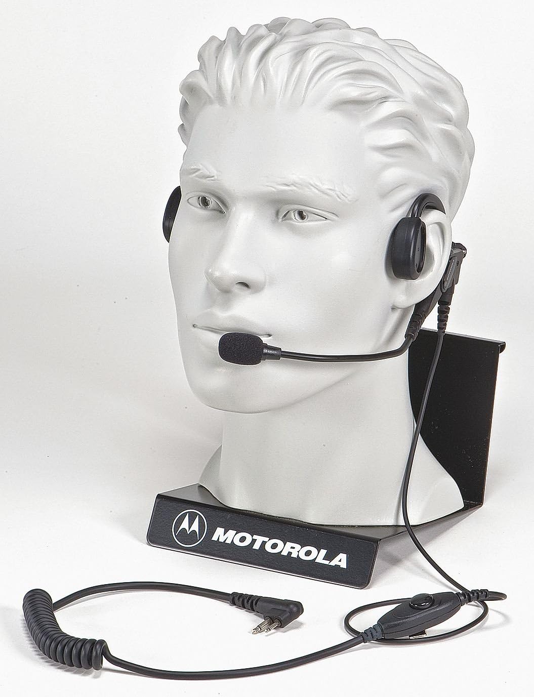 Headset, Product Type Headsets, Compatible Radio Brand Motorola, Compatible Radio Series BPR40, CP200d, Compatible Radio Grainger Model Number 4PJD4, Headset Style Behind-the-Head, Earpiece Style Not Applicable, Number of Ears Two Ear, Number of Wires 1, Push To Talk Yes, Microphone Location In-Earpiece, Earpiece Color Black, Volume Control No, Includes Headset, Features Bone Conduction Enables User to Receive Audio Without Covering Ears, Noise Canceling No