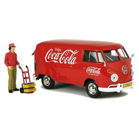 Coca-Cola 1963 Volkswagen T1 Cargo Van with Delivery Driver, Hand Cart Cases 1/24 by Motor City Classics 424062