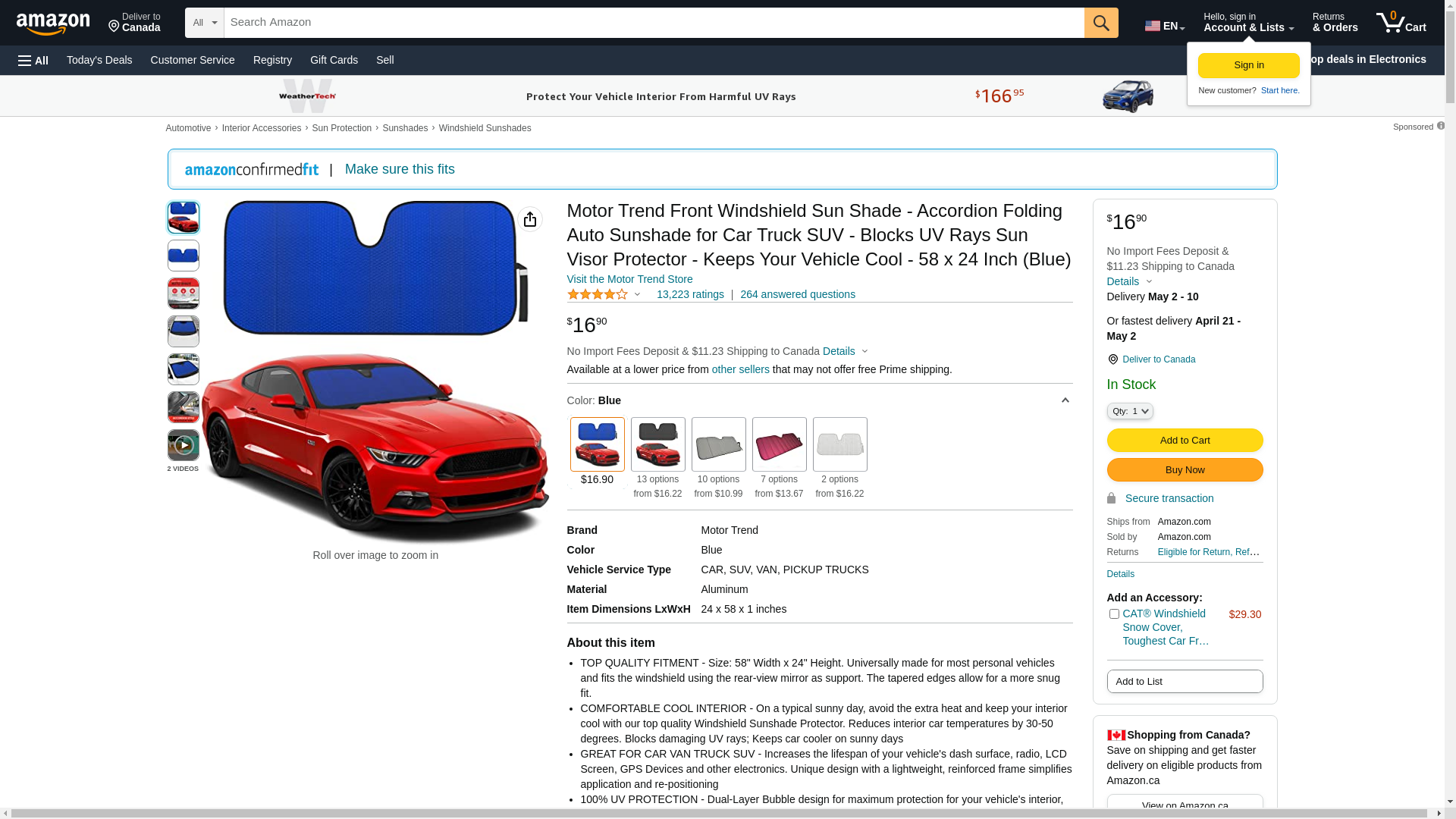 | Product type | VEHICLE_INTERIOR_SHADE |