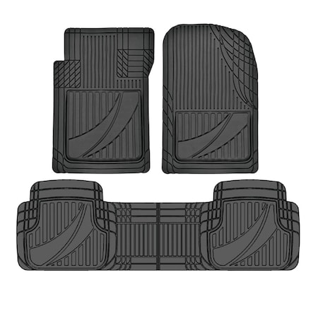 Heavy Duty Rubber Floor Mats, Deep Groove, 3 pc Set, Black