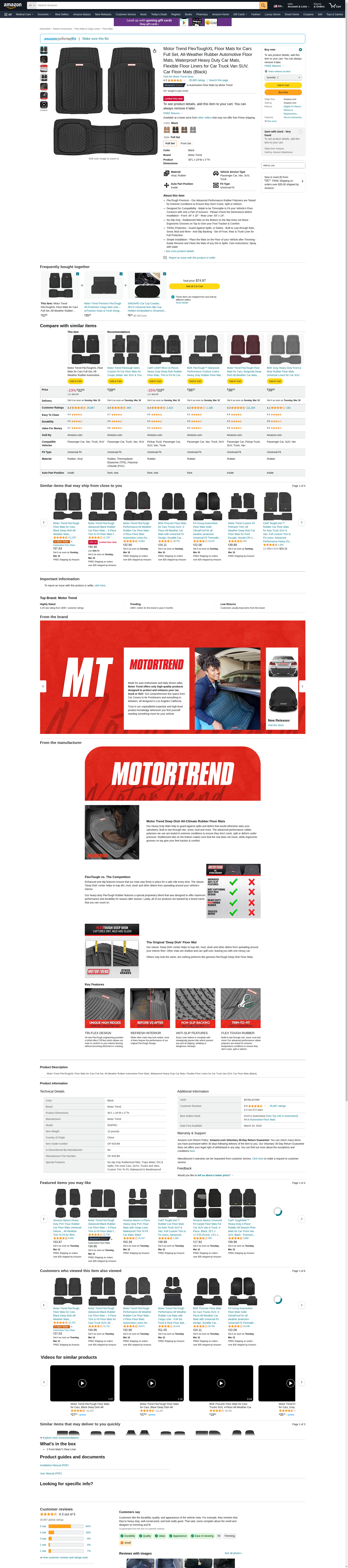 Motor Trend FlexToughXL Floor Mats for Cars Full Set, All-Weather Rubber Automotive Floor Mats, Waterproof Heavy Duty Car Mats, Flexible Floor Liners for Car Truck Van SUV, Car Floor Mats (Black)