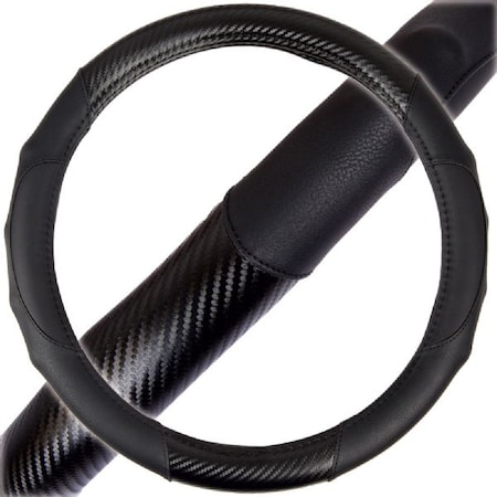 Motor Trend GripDrive Black Carbon Fiber Steering Wheel Cover, Standard 15 inch Size, Black Faux Leather Comfort Grip, Car Steering Wheel Cover for Auto Truck Van SUV