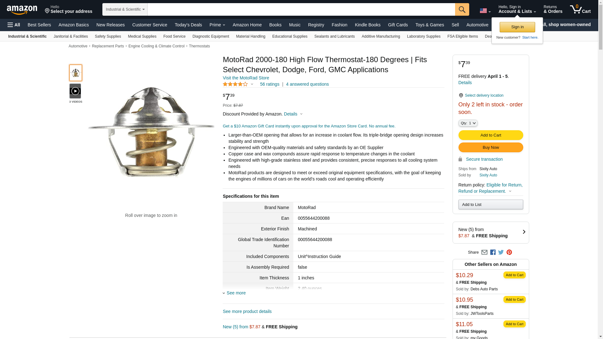 MotoRad 2000-180 High Flow Thermostat-180 Degrees | Fits Select Chevrolet, Dodge, Ford, GMC Applications