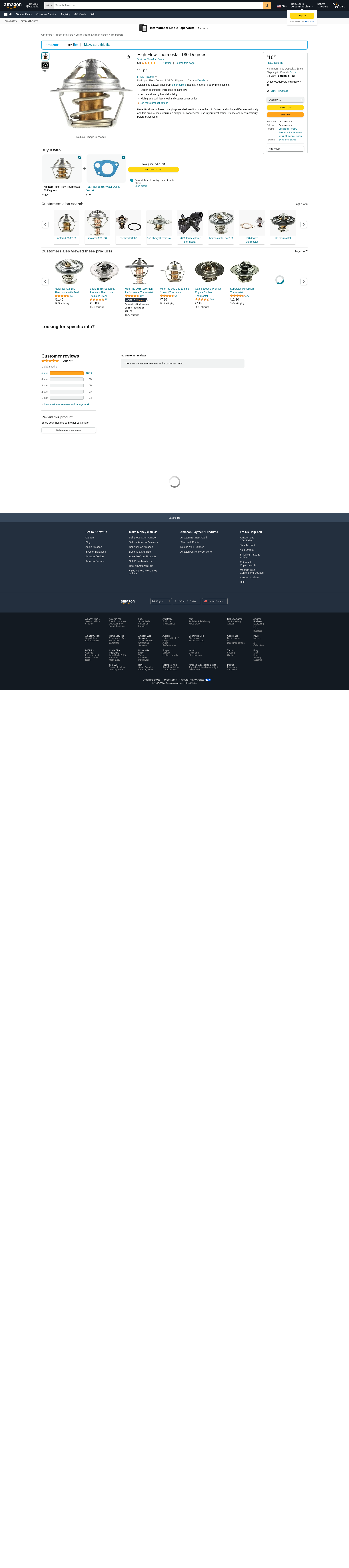 High Flow Thermostat-180 Degrees