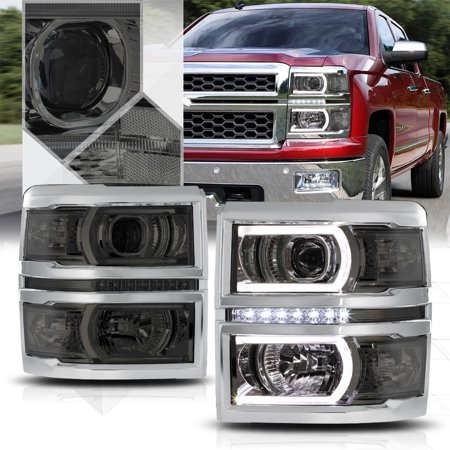 Smoke/Amber Projector Headlight *DUAL C* LED Strip DRL for 14-15 Silverado 1500