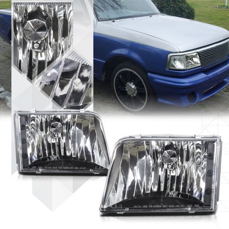 Black/Chrome Housing Clear Lens Headlight for 93-97 Ford Ranger Pickup Truck