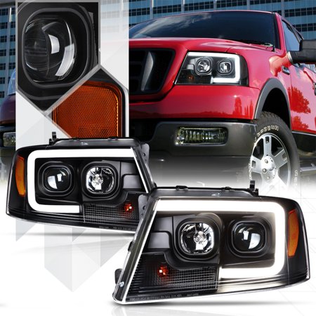 Black Projector Headlight Lamp LED Strip DRL Amber Signal for 04-08 F150/Mark LT