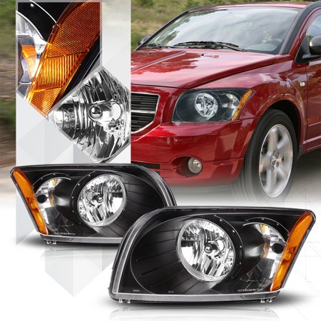 Black Housing Headlight Lamp Amber Turn Signal Reflector for 07-12 Dodge Caliber